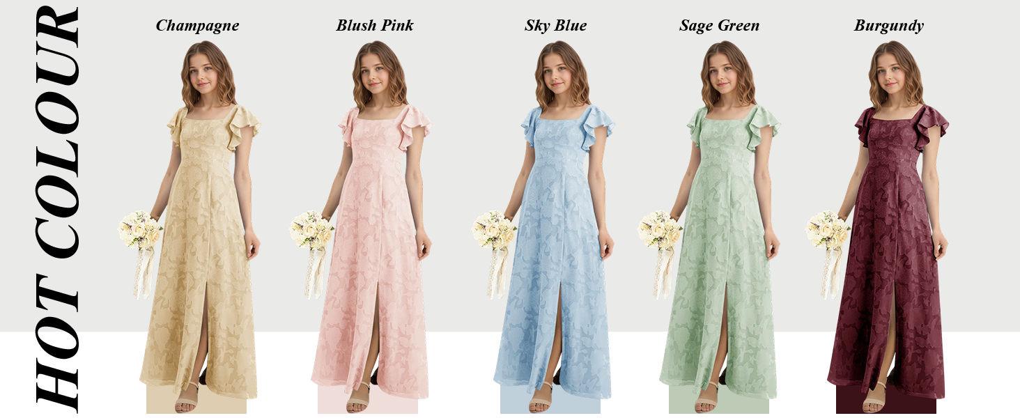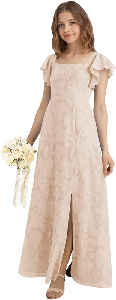 الميزة: فستان مصنوع يدويًا. فستان وصيفة العروس رائع مقصوص من قماش الدانتيل الزهري. فتحة رقبة مربعة وأكمام مرفرفة ورباط خلفي مجوف. ويكتمل المظهر بتنورة على شكل حرف A مع فتحة في الساق. فساتين زفاف رسمية طويلة للفتيات المراهقات على شكل حرف A.