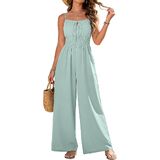 جمبسوت حريمي 2026 حزام سباغيتي غير رسمي واسع الساق سروال طويل ثوب فضفاض قطعة واحدة ملابس الصيف مع جيوب in Kuwait