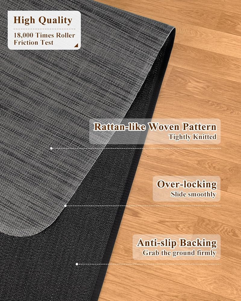 تصميم متخصص: تم تصميم سجادة المكتب بنمط منسوج فريد يشبه الروطان. يتم وضعها بشكل مسطح دون عناء بمجرد إخراجها من الصندوق وتمتزج بسلاسة مع أي ديكور. مثالية لمجموعة واسعة من المساحات، بما في ذلك المكاتب وغرف الكمبيوتر وغرف النوم والدراسات.