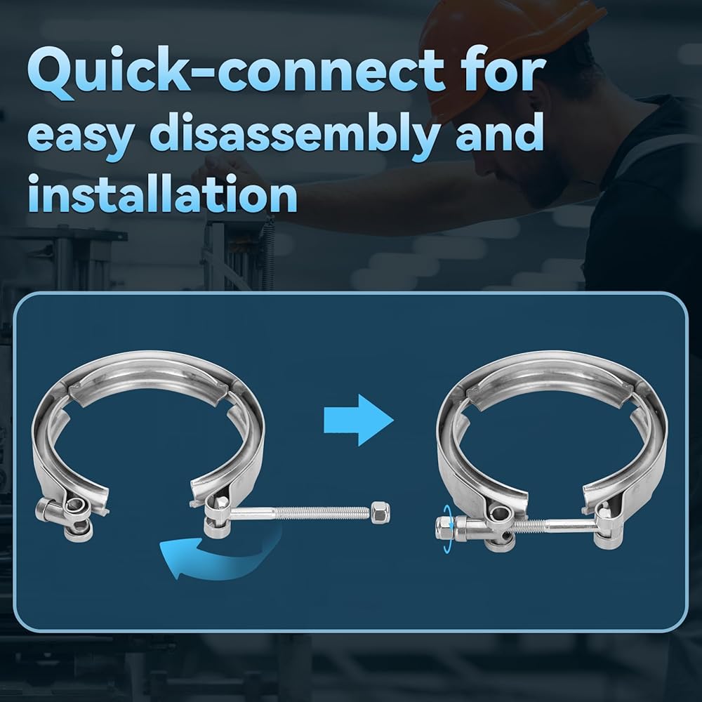 【Quick-Release Design】v band clamp 3 inch Connect or disconnect your exhaust sections in seconds by simply loosening one T-bolt nut. Ideal for applications requiring frequent access or modifications, making maintenance and upgrades a breeze