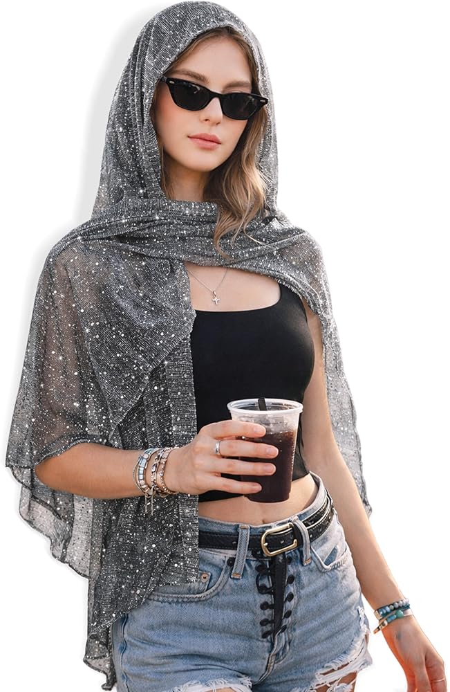 This oversized shimmering scarf is a stunning blend of elegance and versatility. Crafted from a glossy, lightweight fabric, it drapes beautifully and feels breathable against the skin, perfect for both warm and cool weather. The lustrous surface catches the light with every movement, adding a subtle sparkle that elevates your everyday style. Whether thrown over the shoulders for a breezy look or wrapped around your neck or hair, this scarf is a graceful statement piece for any occasion. Let its airy charm and radiant texture bring your outfits to life.