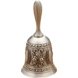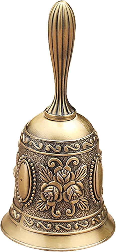 Elegant Floral Design: Featuring exquisite floral engravings and a vintage-inspired aesthetic, this hand bell boasts a captivating, ornate appearance. Its electroplated brass construction and polished finish make it both eye-catching and timeless.