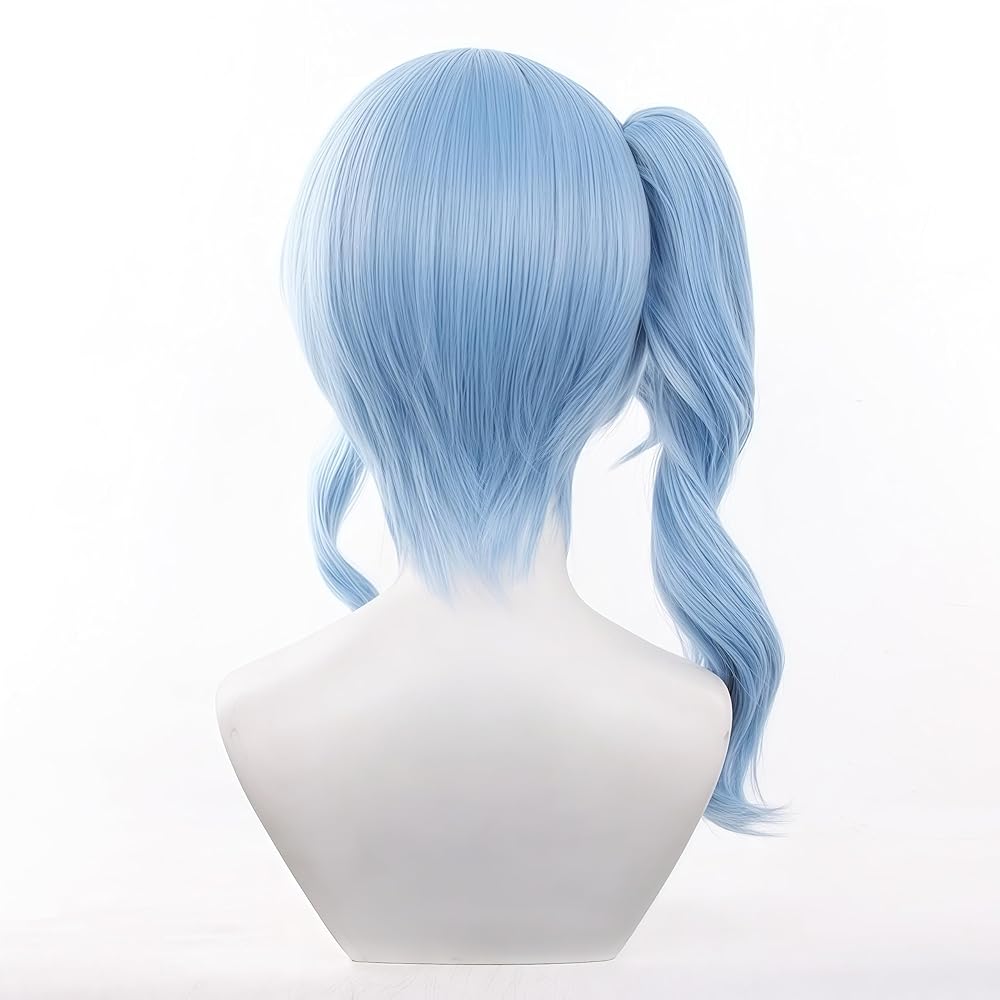 شعر مستعار سويسي من هوشيماتشي، شعر أزرق على شكل ذيل حصان، قابل للفصل، شعر مستعار صناعي مستقيم مقاوم للحرارة