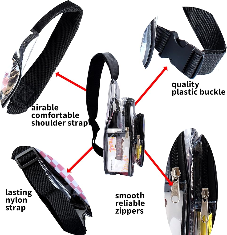 Clear Sling Bag, Adjustable Shoulder Bag for Women & Men, Small Transparent Purse