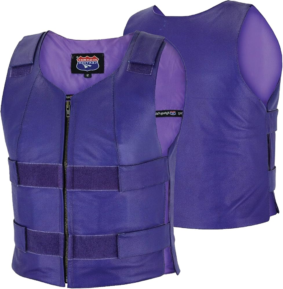 This Women's Purple Leather Motorcycle Vest combines a SWAT Team Design-inspired style with functionality and comfort for everyday riders. Made from premium soft milled leather, this vest is tailored specifically for women and features an adjustable fit with hook-and-loop straps on the sides and shoulders — perfect for layering over your favorite riding gear. The front zip closure provides a secure fit, while the interior includes two practical utility pockets, great for carrying small personal items. The vest also includes a smooth satin lining for added comfort and ease of movement. With a large, blank back panel ready for custom embroidery or patches, this vest is ideal for motorcycle clubs, riding groups, or anyone who loves the open road.
