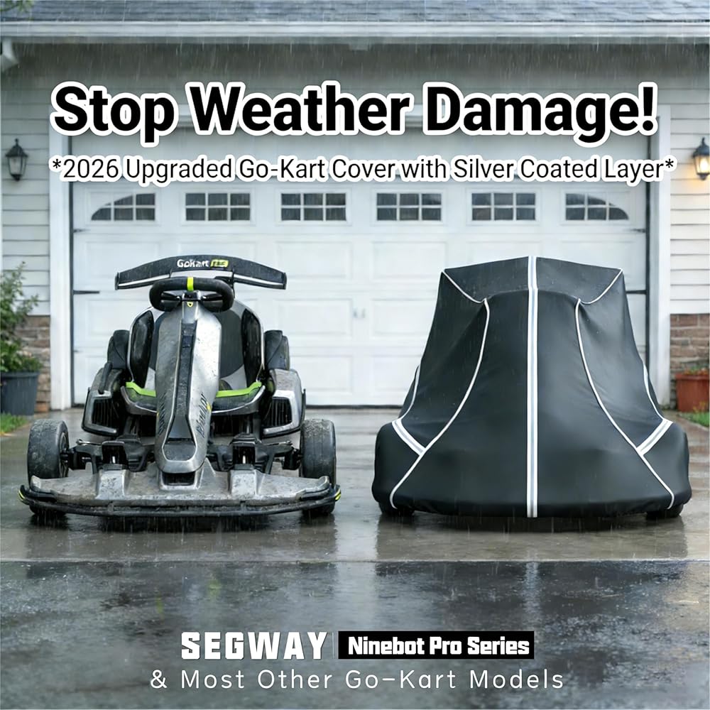 غطاء Go-Kart، الأبعاد 55 طول × 33 عرض × 28 ارتفاع، متوافق مع Segway Ninebot Gokart Pro مصنوع من قماش أكسفورد عالي التحمل مطلي بالفضة ومقاوم للغبار، تصميم محمول خارجي 600D