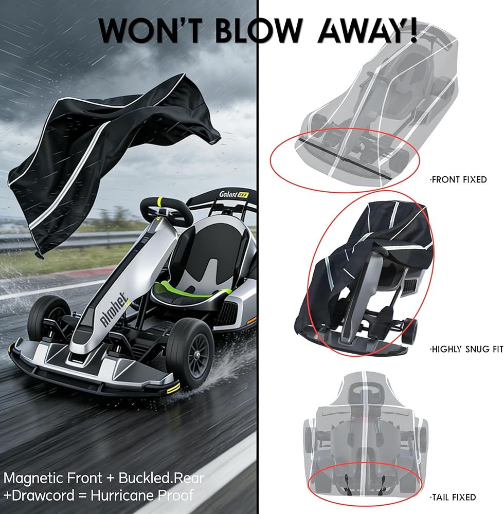 【"سترة" Gokart 】 يعمل هذا الغطاء المصمم باحترافية مثل "سترة" مصنوعة خصيصًا لحماية Gokart الخاصة بك بشكل فعال. إنه يوفر حماية مقاومة للماء والغبار والأشعة فوق البنفسجية ضد الأوراق المتساقطة والخدوش وفضلات الطيور وغيرها من الحطام.