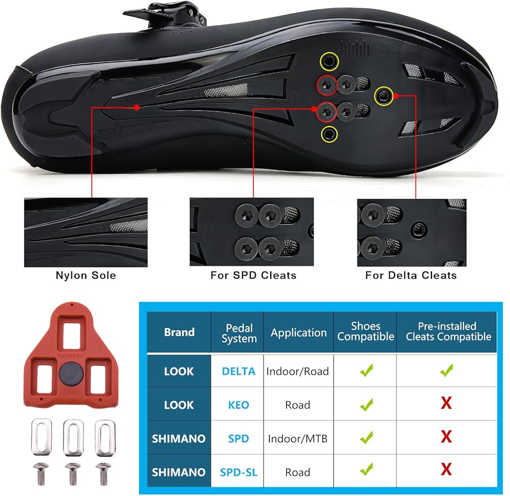 【التوافق والمناسبات】: أحذية ركوب الدراجات هذه متوافقة مع لوك دلتا وشيمانو إس بي دي وركوب الدراجات على الطرق وركوب الدراجات MTB، وركوب الدراجات في الأماكن المغلقة وفي الهواء الطلق. أحذية الدراجة متوافقة مع معظم أنواع المرابط. نصائح: إذا كانت الدراجة لديك غير متوافقة مع مظهر دلتا ، فإنها تحتاج إلى شراء المسندات المقابلة.