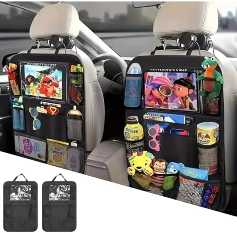 Clear Tablet Holder: Our car back seat organizer with a clear tablet holder will make your engaged and happy, because we, use custom-made material to easily touch the screen.