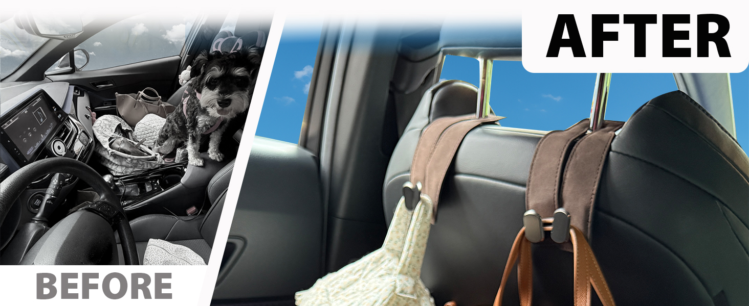 خطافات مقعد السيارة الآمنة على المقعد: لا توجد خدوش أو تلف. على عكس البدائل البلاستيكية الصلبة، تتميز خطافات مقاعد السيارة الجلدية هذه بسطح ناعم وصديق للمقعد لن يخدش أو يتلف مواد التنجيد. يمتزج تصميم خطاف مسند الرأس المخفي بسلاسة مع الجزء الداخلي من منزلك للحصول على مظهر أكثر نظافة وأمانًا.