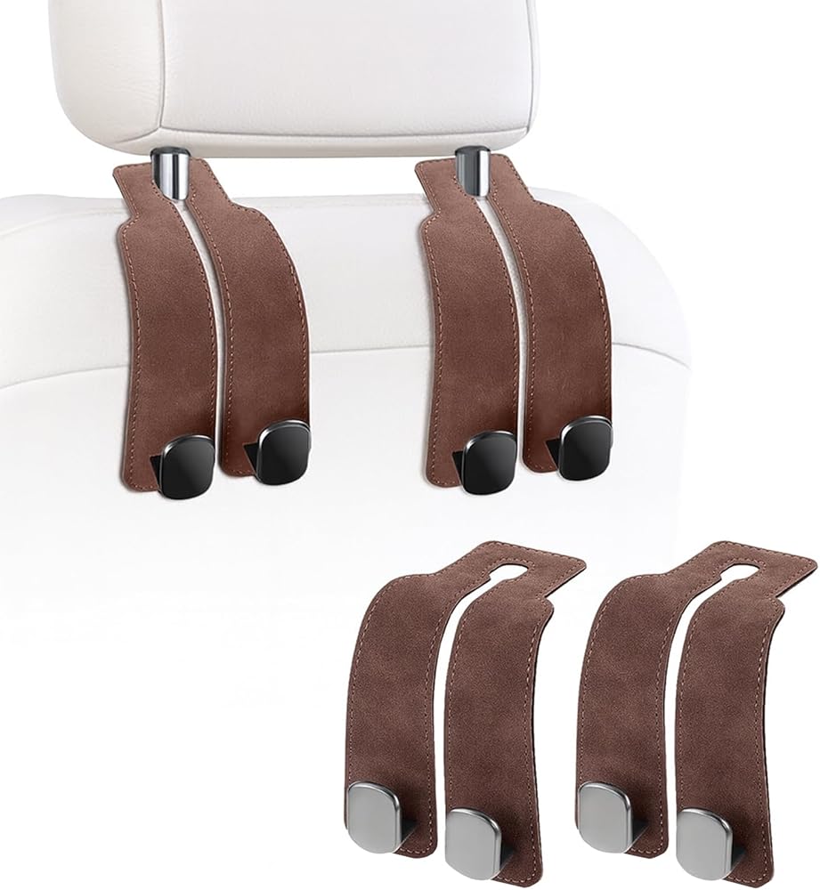 خطافات محفظة شديدة التحمل للسيارة: سعة تحمل تصل إلى 22 رطلاً (لكل زوج)، مما يوفر دعمًا موثوقًا لحقائب الظهر وحقائب اليد وحقائب التسوق والمزيد؛ مصنوع من جلد سويدي فاخر وحشية معدنية مرنة للقوة والمتانة.