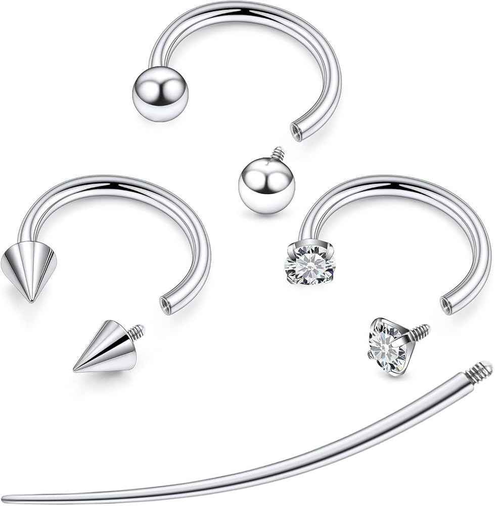 القائمة: تتضمن 3 قطع من مجوهرات ثقب الجسم الدائرية على شكل حدوة حصان مع أداة تغيير واحدة.
