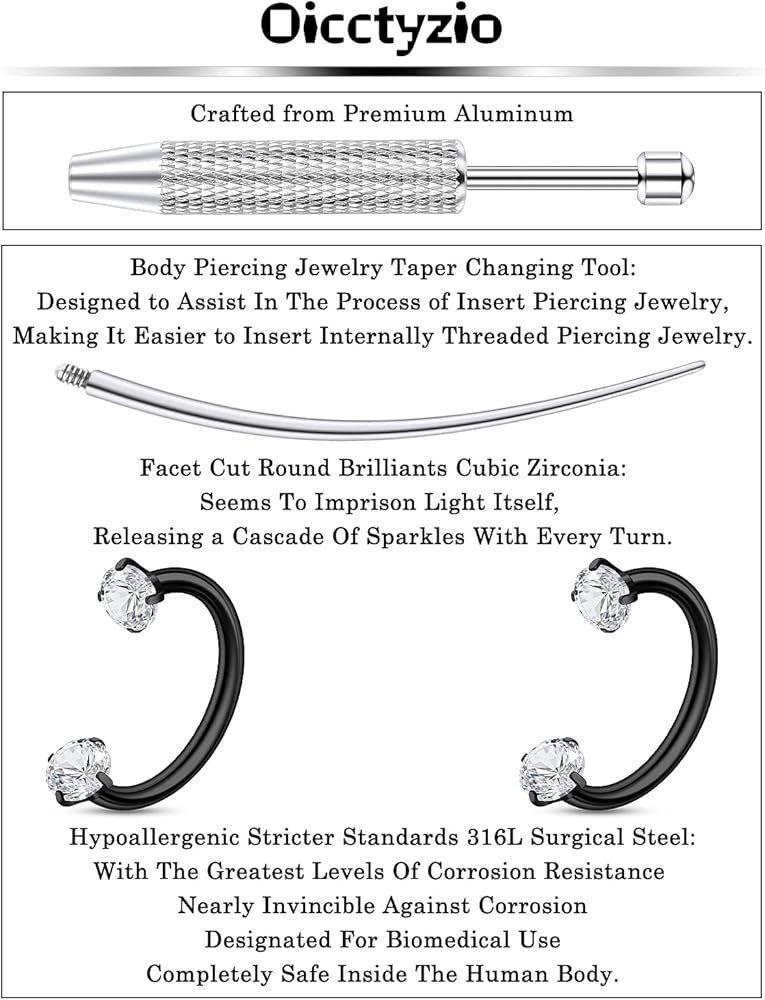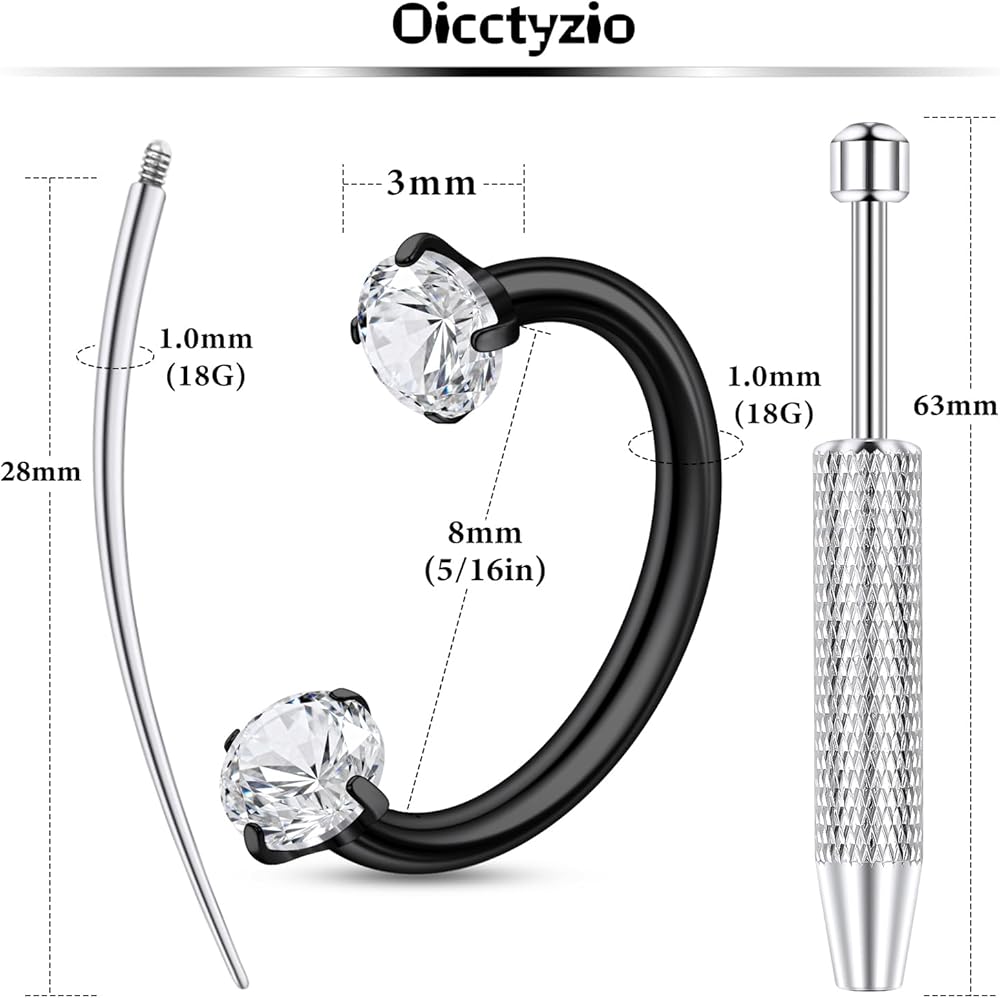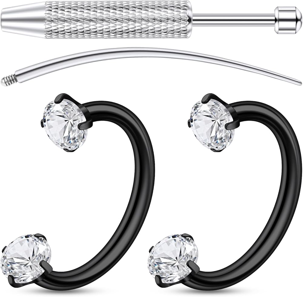 • حلقات الأنف على شكل حدوة الحصان وأقراط Daith ثقب المجوهرات مع أدوات التغيير