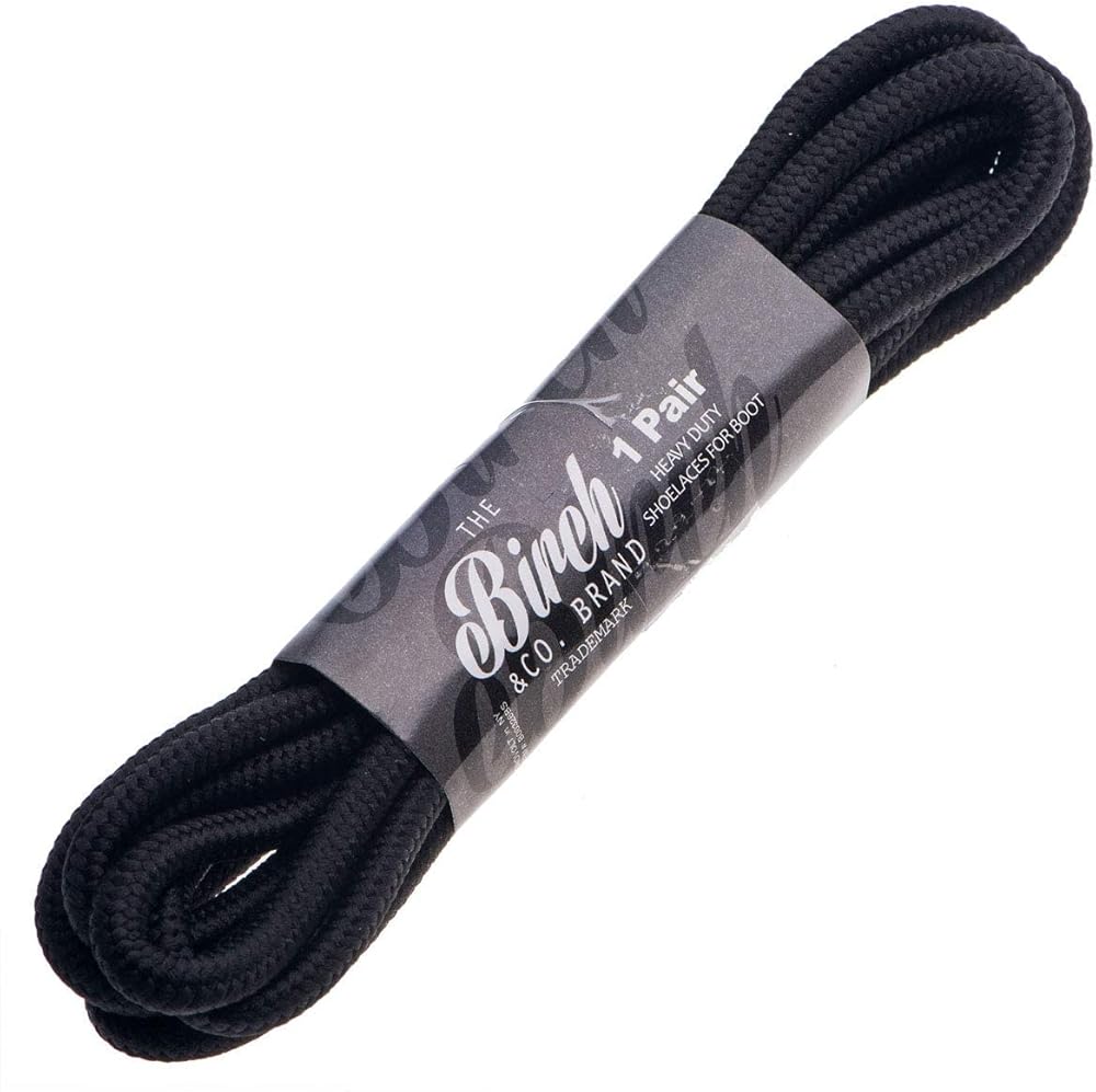 أربطة أحذية دائرية سميكة وشديدة التحمل مقاس 1/5 بوصة من خشب البتولا للأحذية طويلة الرقبة وأحذية المشي لمسافات طويلة. (63 بوصة (161 سم) -L، أسود)