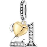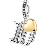 Where Your Number Shines, and Love is Always Attached. Some numbers are just numbers. Others hold our most precious memories, mark our proudest achievements, and symbolize our deepest connections. Our CZ Paved Number Charm Collection is designed to celebrate those numbers, transforming them into a dazzling keepsake you can wear close to your heart. A Design That Speaks Volumes: Every charm is a statement piece. The chosen number is meticulously set with brilliant cubic zirconia stones, catching light with every movement. Attached delicately to each number is a gleaming 18K gold plated heart—a universal token of love, passion, and care. This combination of cool, sparkling silver and warm, golden love creates a stunning visual harmony that is both modern and timeless. For Your Milestone, Your Way: Birthdays: Celebrate a sweet 16, a coming-of-age 18, a landmark 21st, or a fabulous 40th. Anniversaries: Commemorate a 10th wedding anniversary, a silver 25th, or a golden 50th year together. Special Dates: Honor a house number, a lucky number, a favorite athlete's jersey, or any date that changed your life. Crafted for Versatility and Lasting Wear: We believe in jewelry that adapts to your life. The secure loop allows you to easily attach this charm to: Your favorite Pando or compatible bracelet, as a standout piece. A silver or gold chain (sold separately), to wear as a singular, meaningful pendant. Crafted from authentic 925 Sterling Silver with secure stone settings and quality gold plating, this charm is made to be worn and cherished for years to come. Product Details: Material: 925 Sterling Silver, Cubic Zirconia, 18K Gold Plated Heart Accent. Options: Please select your meaningful number from the list: 10, 13, 15, 16, 18, 20, 21, 25, 30, 40, 50, 60. Compatibility: Designed for Pando bracelets, necklaces, and similar charm systems. Loop inner diameter is approximately 4.5mm. Care: To maintain its brilliance, store separately in a soft pouch. Avoid contact with water, chemicals, and perfumes. Polish gently with a soft, dry cloth. Click “Select Your Number” and choose the digit that holds your story. Add this radiant, love-adorned charm to your cart and wear your milestone with pride and sparkle.
