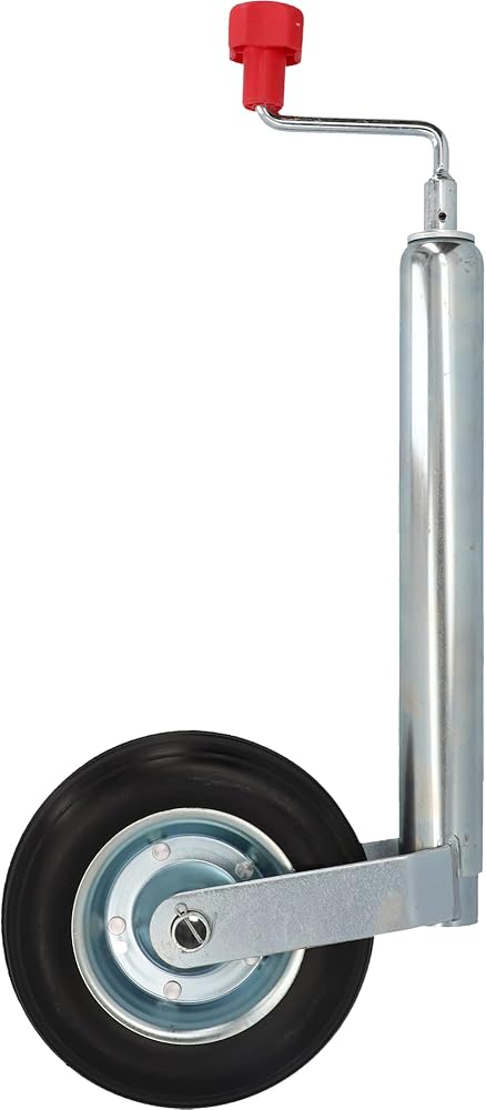 Unitec support wheel with crank for residential and transport trailer 48mm 10372 Support wheel with a tube diameter of 48mm Suitable for caravan and trailer Rubber tyre with steel wheel and crank handle for height adjustment The diameter of tires: 200mm, tire width: 45mm max. Bearing load: 150 kg For attachment to the draw bar or to the trailer, the clamp (item 10331) can be used. Contents: