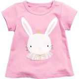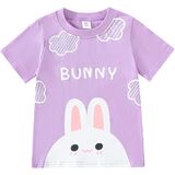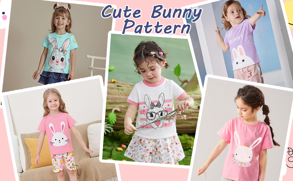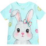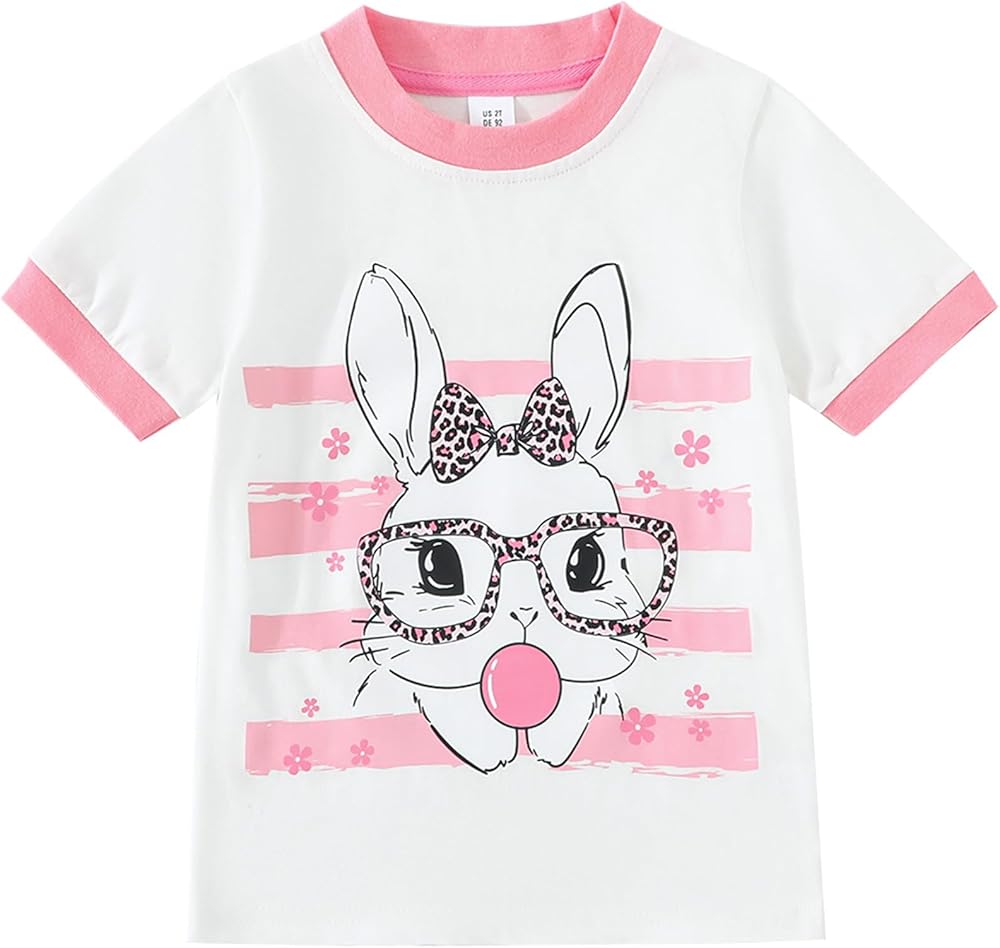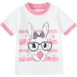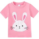 تي شيرت بناتي على شكل أرنب برقبة دائرية وأكمام قصيرة، تصميم بنمط طباعة أرنب لطيف، لون مشرق جميل، يجذب انتباه الأطفال، سيجعل طفلك أكثر جمالاً وجمالاً.