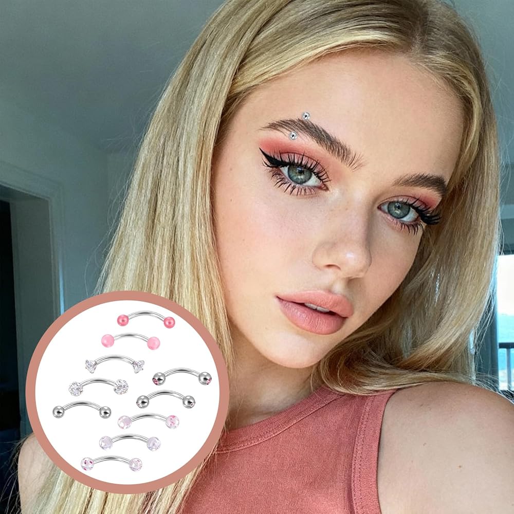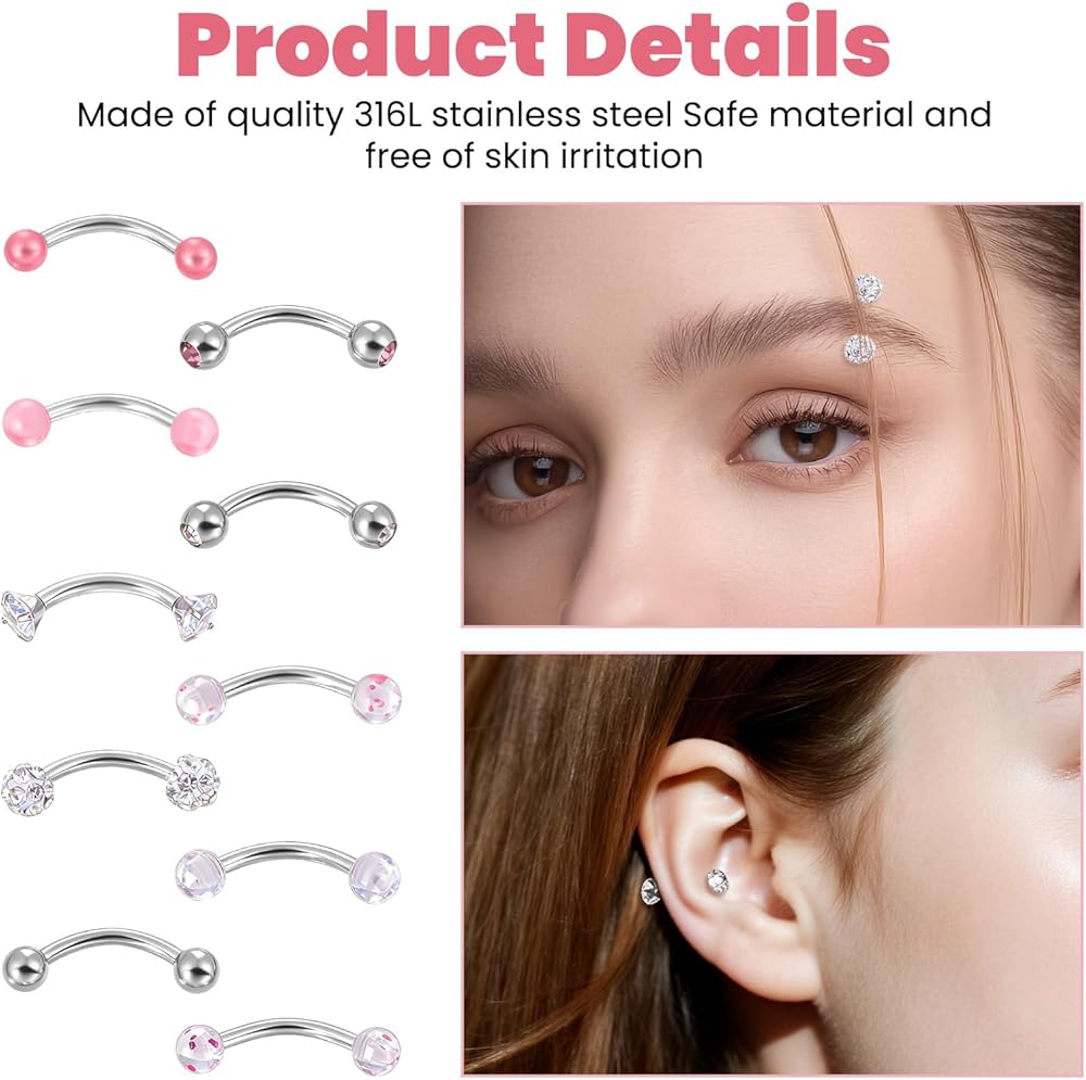 • Premium Material: Crafted from high-quality 316L stainless steel, these eyebrow rings for women offer exceptional properties and durability. Featuring precision-cut colored zirconia stones, they deliver a dazzling, fade-resistant sparkle. The mirror-polished surface ensures smooth, burr-free skin contact, maintaining their radiant luster even with prolonged wear while elevating the overall design aesthetic.