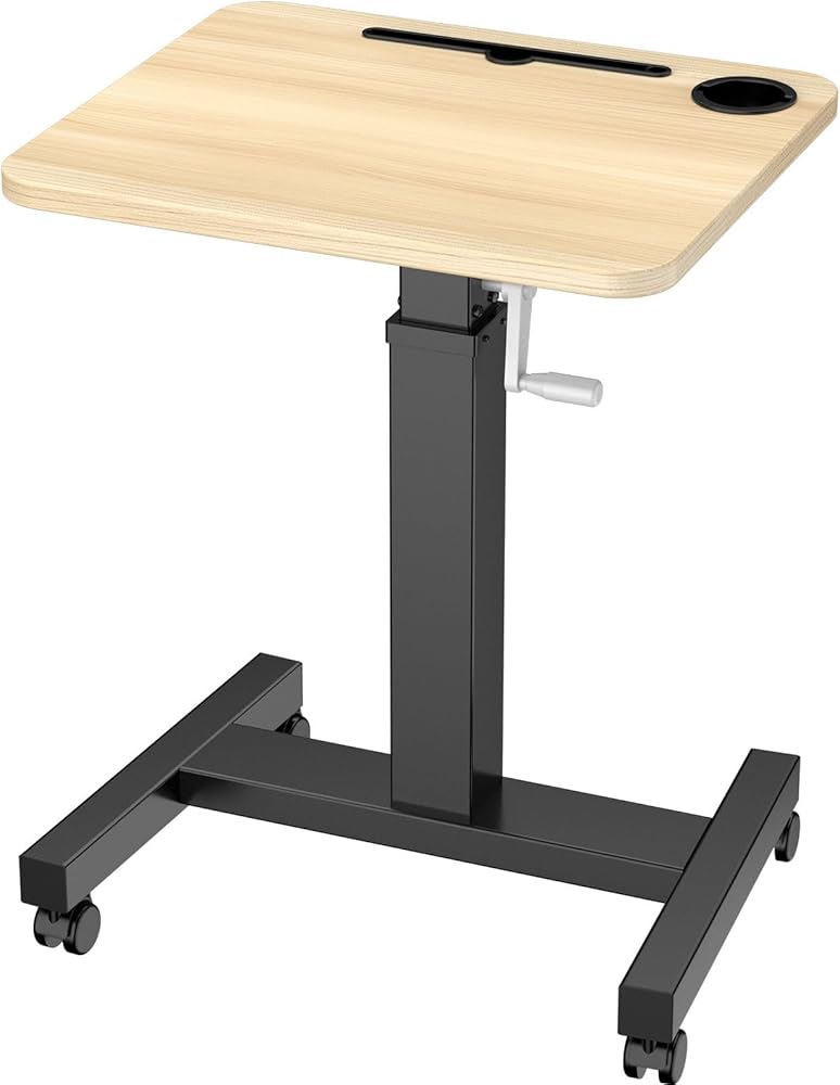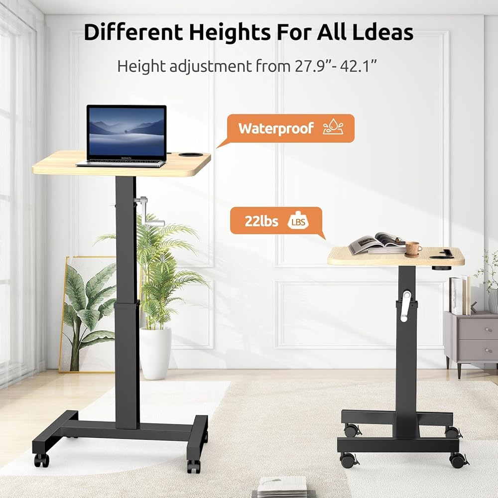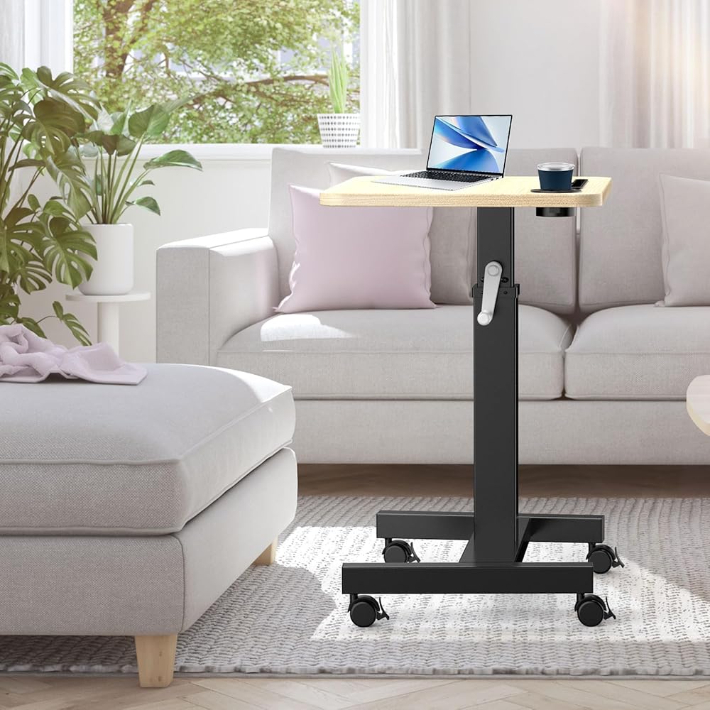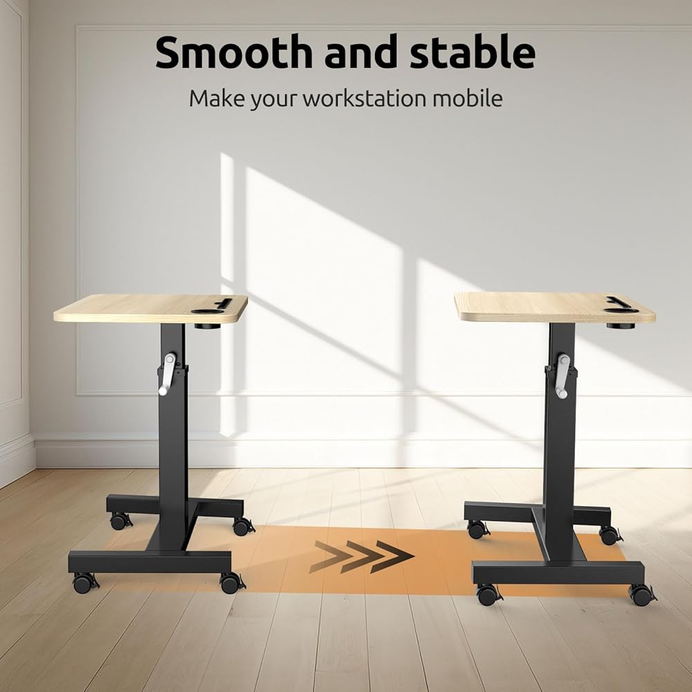 مكتب كمبيوتر محمول، مكتب قائم متنقل بعجلات، طاولة رفع، مكاتب رفع للمكتب المنزلي، مكتب كمبيوتر محمول قابل للتعديل بارتفاع قابل للتعديل، محطة عمل صغيرة للجلوس (أسود)