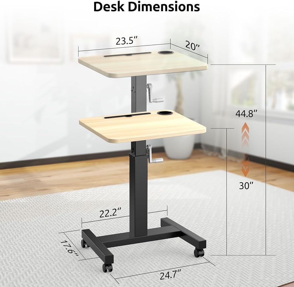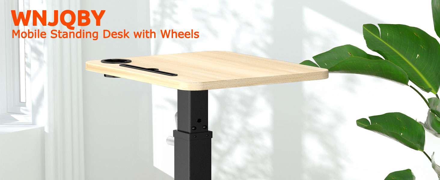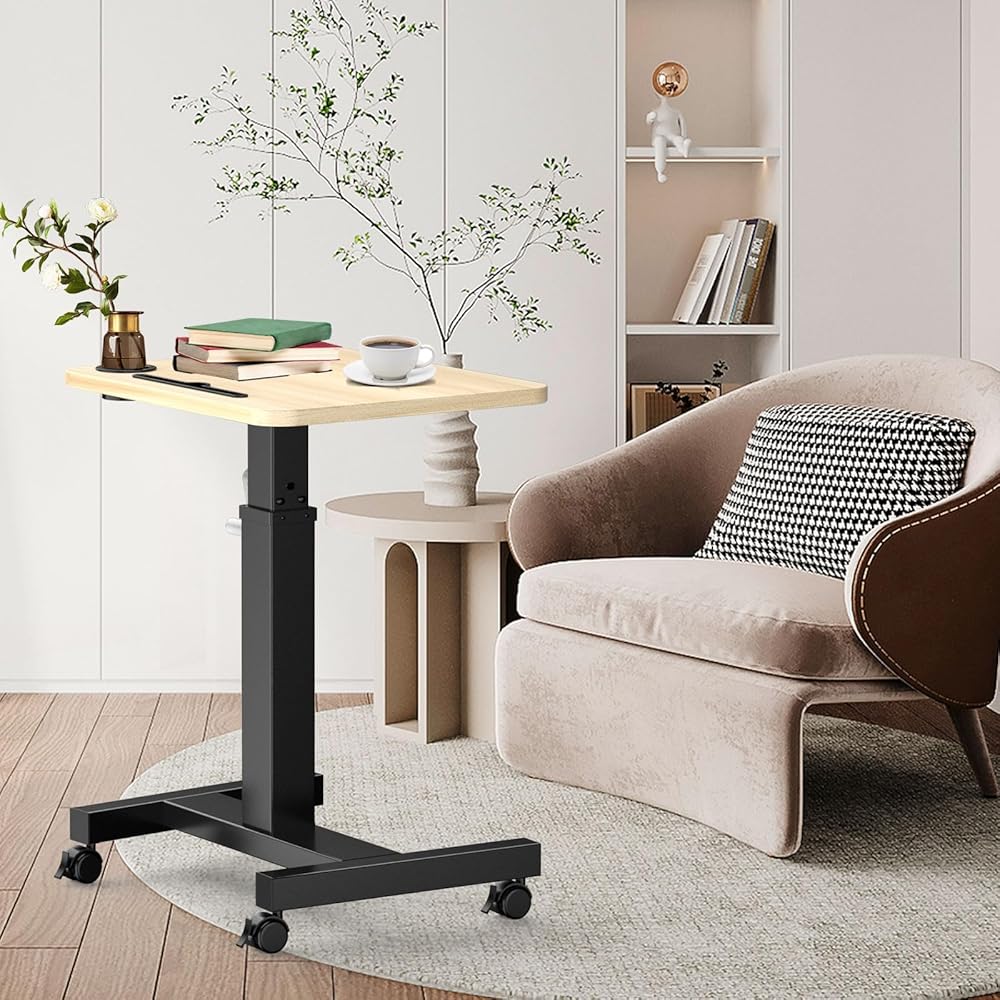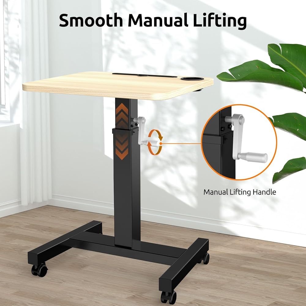 مكتب كمبيوتر محمول، مكتب قائم متنقل بعجلات، طاولة رفع، مكاتب رفع للمكتب المنزلي، مكتب كمبيوتر محمول قابل للتعديل بارتفاع قابل للتعديل، محطة عمل صغيرة للجلوس (أسود)