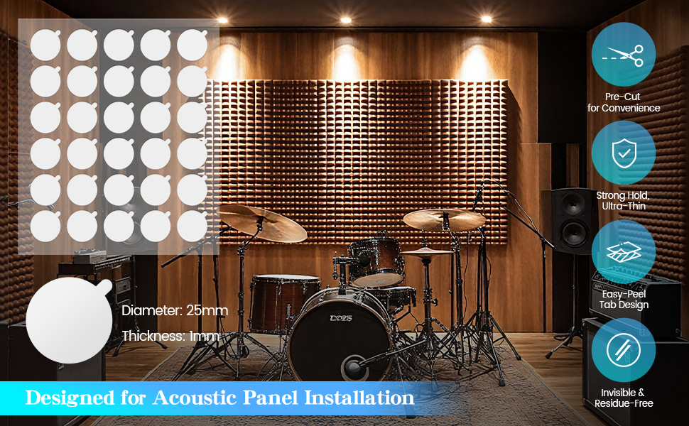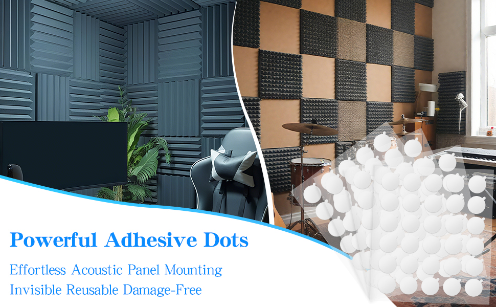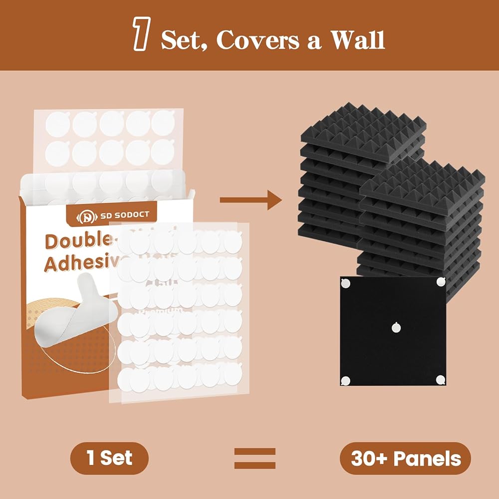 • عبوة اقتصادية مكونة من 150 قطعة - مثالية للمشروعات الصغيرة والمتوسطة: تحتوي هذه العبوة على 150 نقطة لاصقة، كافية لتركيب ما يصل إلى 30 لوحة صوتية. مثالية لإعداد المسارح المنزلية أو زوايا التسجيل أو المكاتب أو مساحات الاستوديو الصغيرة دون إهدار مواد إضافية.
