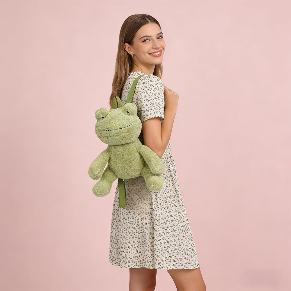 تصميم ساحر: تتميز حقيبة الظهر المحشوة اللطيفة هذه بتصميم ضفدع رائع، تأسر قلوب النساء اللاتي يعشقن الموضة الفريدة والمرحة. لا يثير بريقه اللافت للنظر المحادثة فحسب، بل يضيف أيضًا لمسة من البهجة إلى أي ملابس، مما يجعله إكسسوارًا لا بد منه لمواكبة الموضة. هذه الحقيبة اللطيفة مثالية لأولئك الذين يقدرون سحر محفظة الحيوانات المحشوة.
