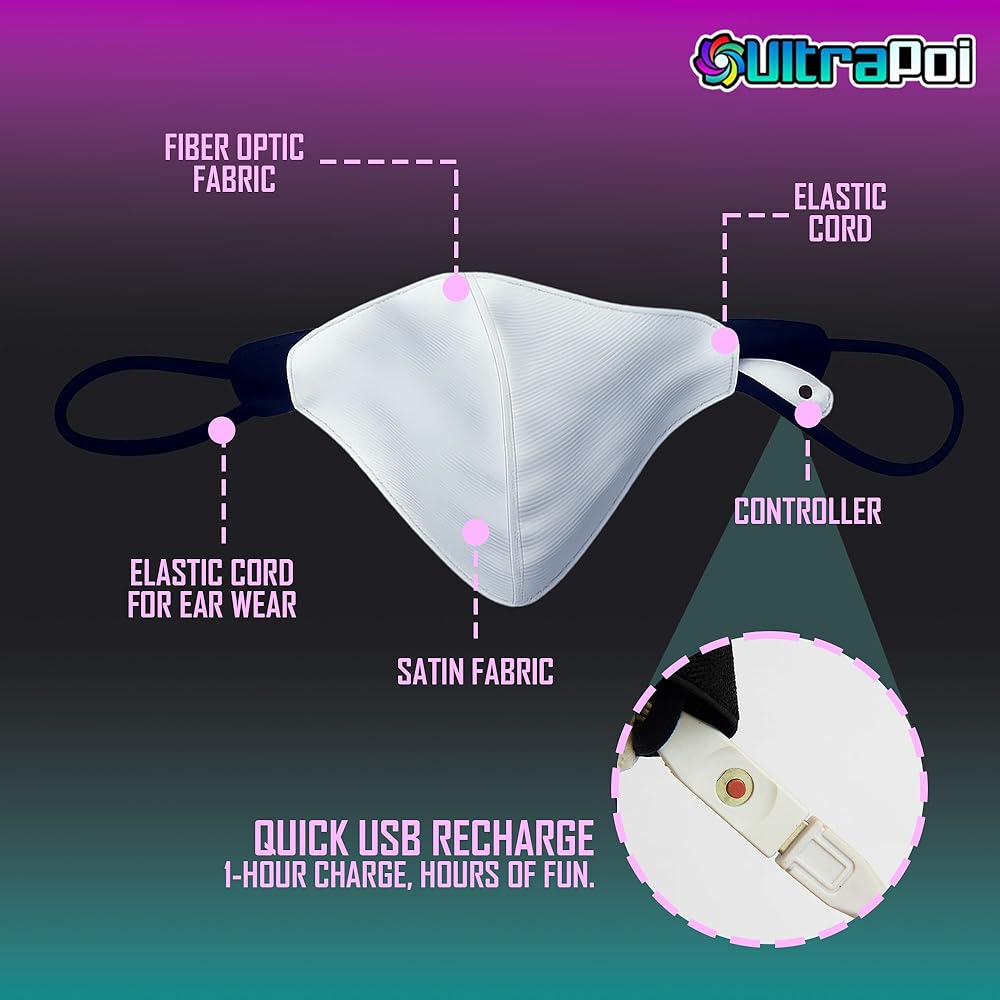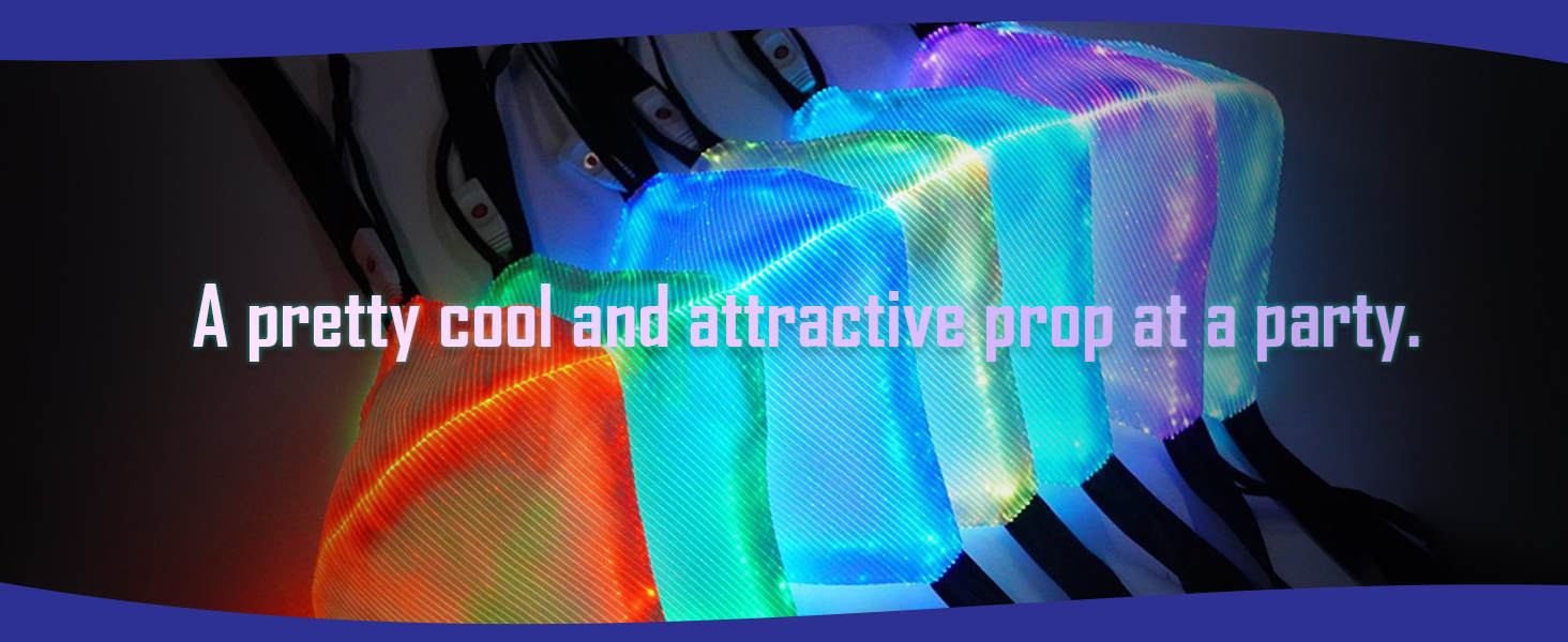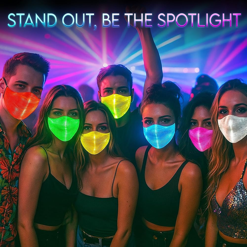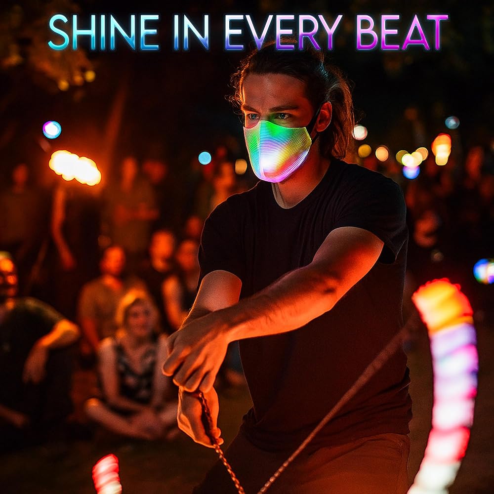 قناع وجه مضيء: ارتدي قناع وجه واقٍ بأناقة مع القدرة على الاختيار من بين 7 خيارات ألوان مختلفة و5 أنماط وامضة مختلفة، جميعها يمكن التحكم فيها بسهولة عن طريق زر واحد منفصل.