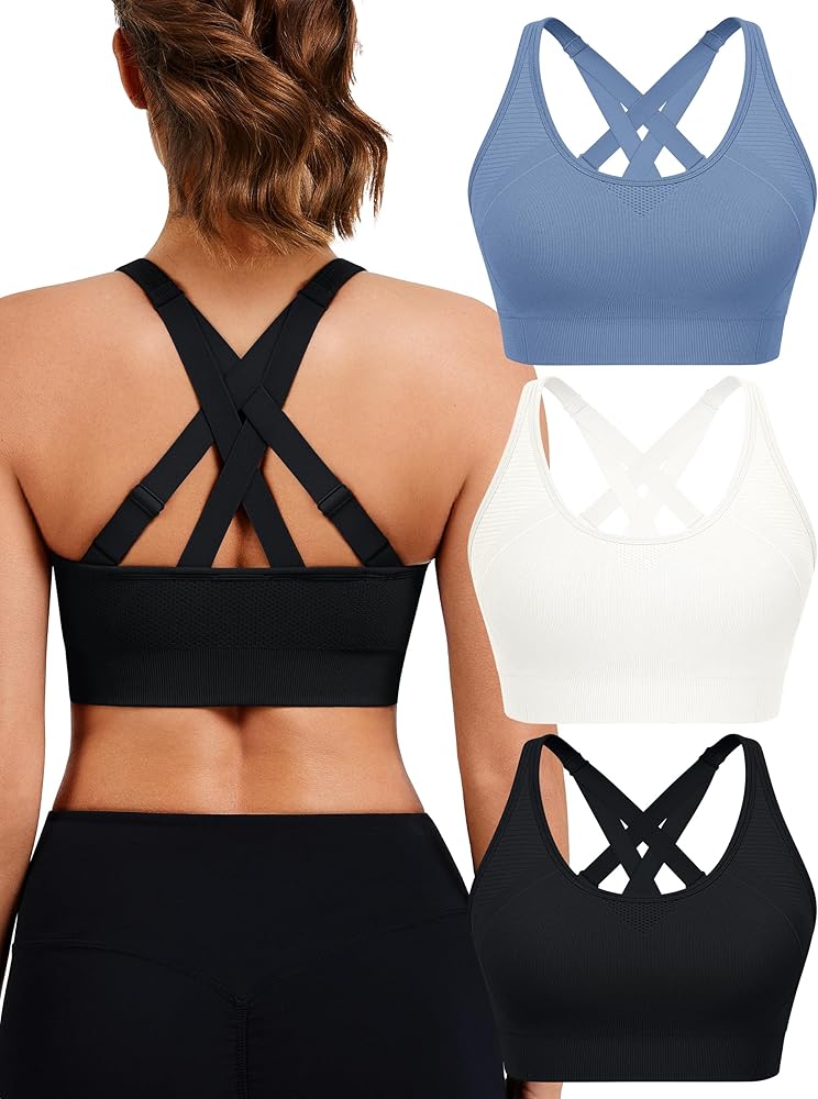 Versatile Multipack Value: This sports bras for women pack delivers unbeatable value with three bras in one pack; As a versatile sports bra pack, it's designed for running, yoga, gym, or casual wear, meeting all your workout needs