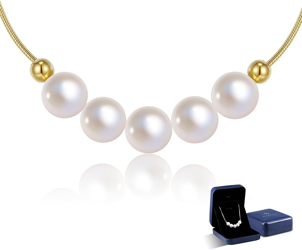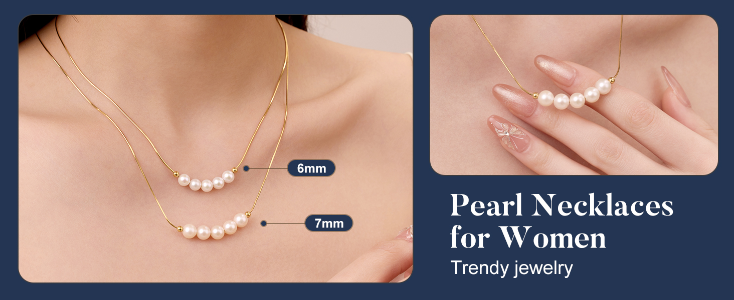【صورة ظلية ابتسامة أنيقة】 تتميز هذه القلادة الذهبية الرقيقة بسبعة قلادات من لؤلؤ المياه العذبة متطابقة تمامًا مقاس 7 مم، تم وضعها بأناقة في قوس ناعم لأعلى يتبع المحيط الطبيعي لعظمة الترقوة. يشع تصميم "الابتسامة" الخالد بسحر متطور، مما يجعله القطعة المثالية للانتقال بسلاسة من النهار إلى الليل.