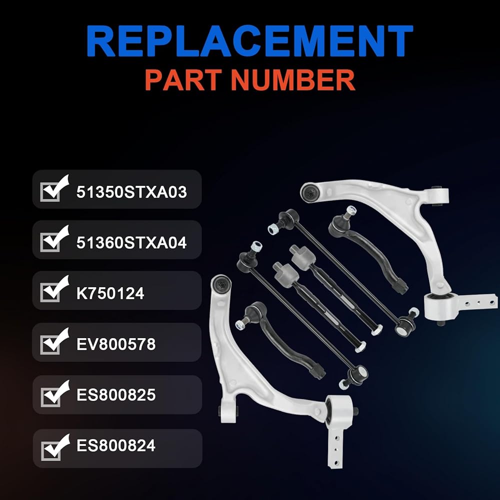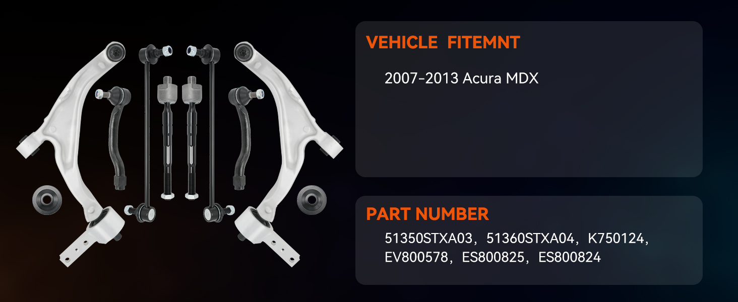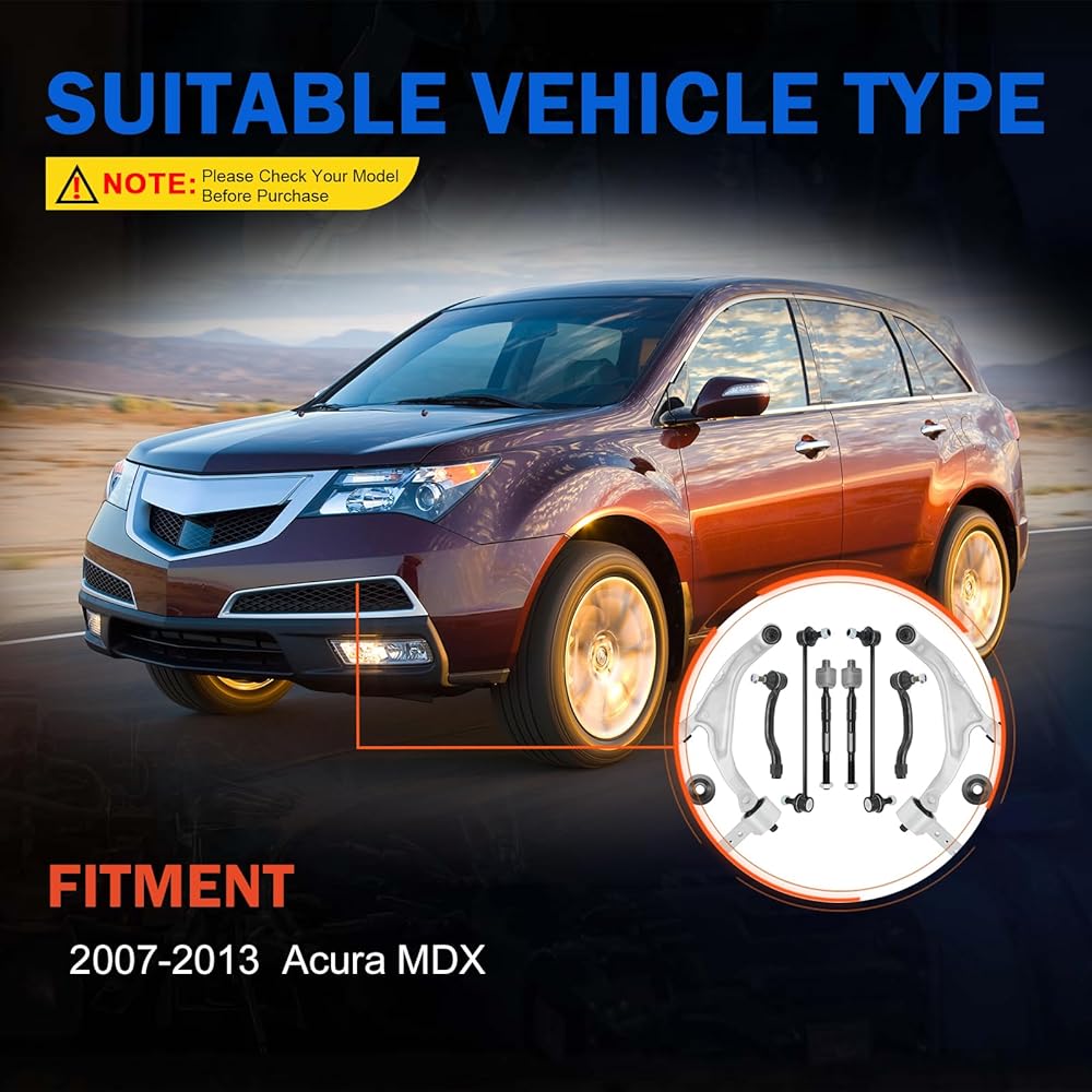 8 قطع ذراع التحكم في طقم التعليق الأمامي مع وصلة كروية، وصلات شريط التأثير، قضيب ربط متوافق مع 2007-2013 Acura MDX استبدال RK621549، RK622037، K750124، EV800578، ES800825، ES800824