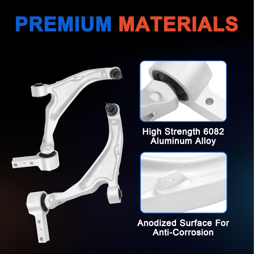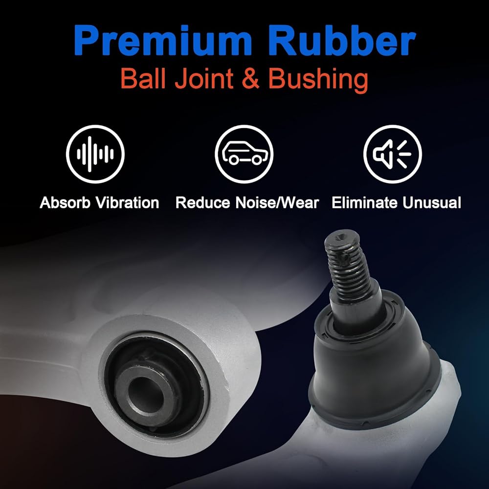 المجموعة الكاملة: تشتمل على أذرع تحكم مع مفاصل كروية، وروابط شريط التأرجح، وقضبان ربط لترقية نظام التعليق الأمامي الشامل