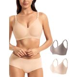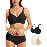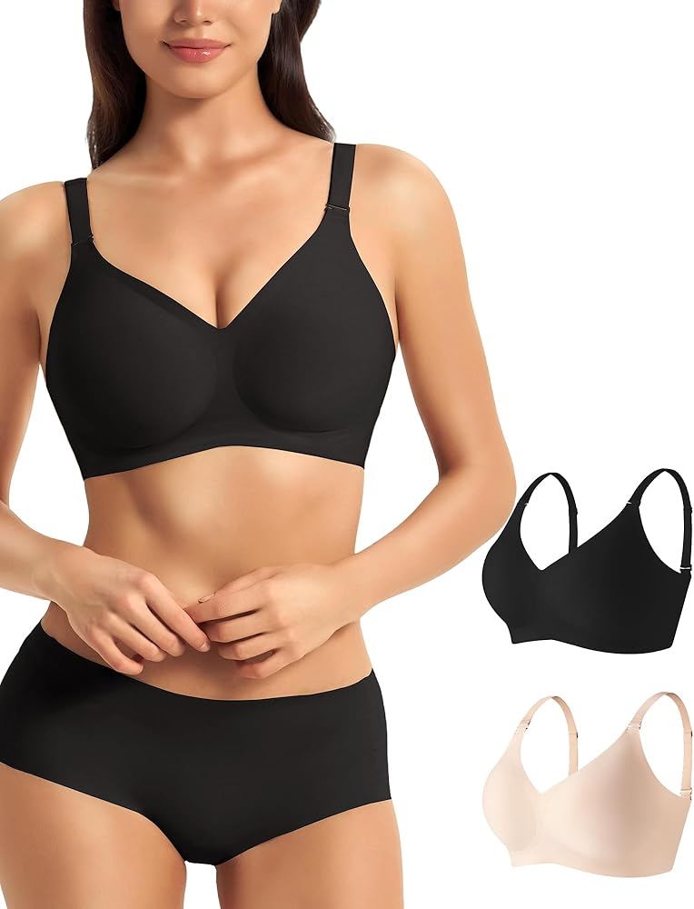 𝗦𝗲𝗮𝗺𝗹𝗲𝘀𝘀 𝗦𝗺𝗼𝗼𝘁𝗵 & 𝗡𝗼𝗻-𝗦𝗹𝗶𝗽 𝗦𝗲𝗰𝘂𝗿𝗲 𝗙𝗶𝘁:Ultra soft seamless bras for women with smooth back, this seamless bra hides back bulges, as bras for women no underwire, wide straps anti-slip, no rolling or slipping all day.