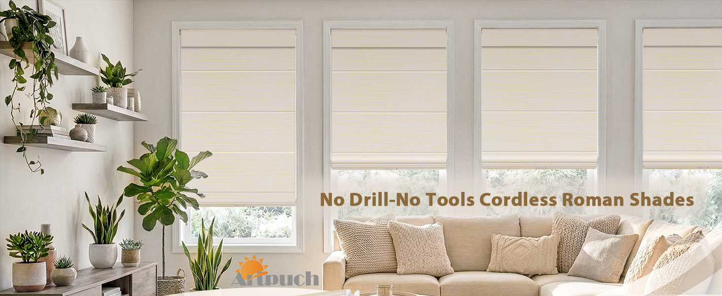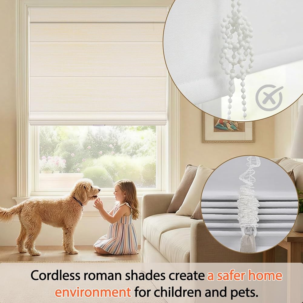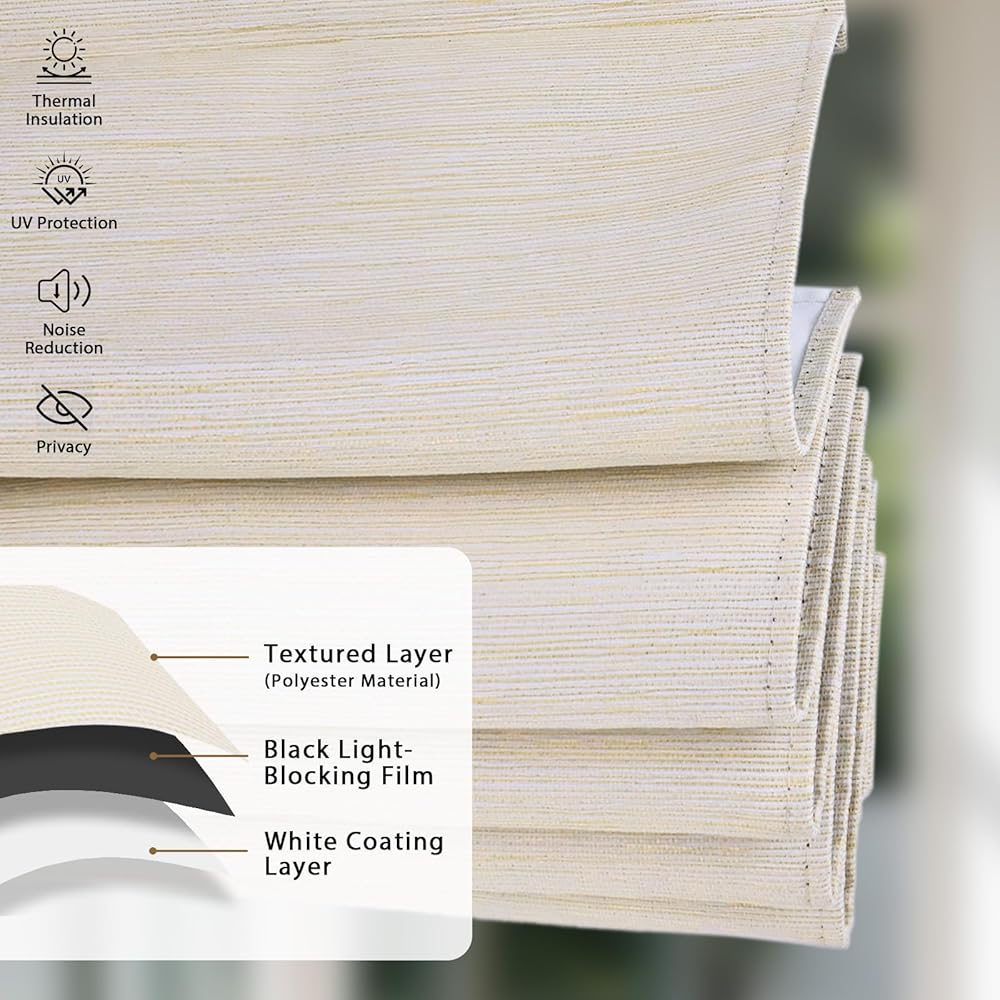 artpuch لا حفر ظلال رومانية لاسلكية للنوافذ، ظلال نافذة التعتيم مع حماية من الأشعة فوق البنفسجية، ستائر النوافذ الرومانية الخصوصية لغرفة النوم غرفة المعيشة مكتب المنزل الداخلي، 34 "ث × 64" ح، البيج