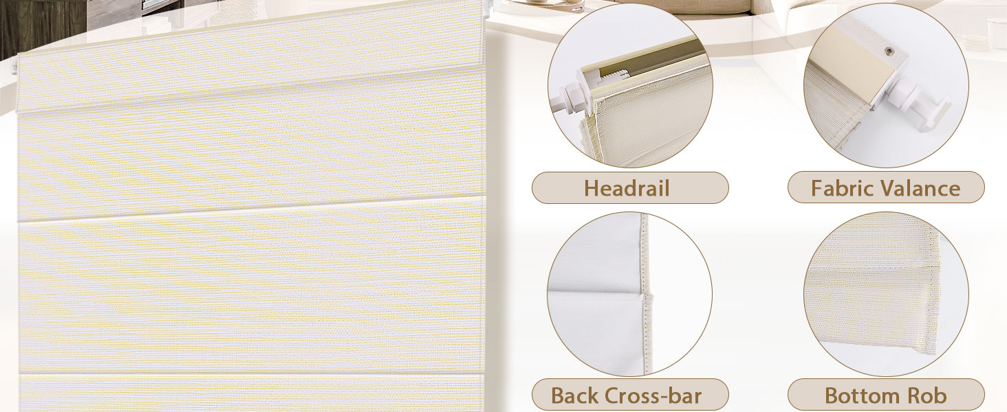 نسيج أنيق ومتين: يضيف البوليستر الفاخر مع نسيج رقيق عمقًا بصريًا ومظهرًا عصريًا ونظيفًا لغرفة المعيشة أو غرفة النوم أو المكتب المنزلي. مقاوم للتجاعيد، ومقاوم للغبار، وسهل الصيانة - ببساطة قم بتنظيف الغبار أو البقع. تسترخي تجاعيد الشحن بشكل طبيعي بعد تعليقها لمدة 2-3 أيام؛ البخار على مستوى منخفض إذا لزم الأمر.