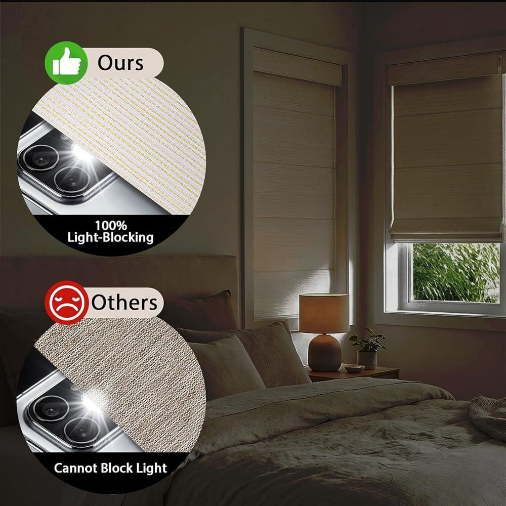 حماية من التعتيم والأشعة فوق البنفسجية بنسبة 100%: تم تصميمه بهيكل ثلاثي الطبقات - وجه بوليستر مزخرف، وطبقة أساسية سوداء تحجب الضوء، وطلاء أبيض - يحجب نسيج الظل الروماني هذا 100% من أشعة الشمس والأشعة فوق البنفسجية الضارة. ستائر النوافذ تخلق بيئة مظلمة تمامًا لغرف النوم أو دور الحضانة أو غرف الوسائط. يساعد التصميم العازل للحرارة على تنظيم درجة حرارة الغرفة ويحمي الأثاث من البهتان.