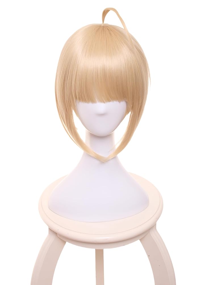 Faithfully replicates Saber's iconic golden blonde updo with her signature ahoge, capturing every detail from the anime. Made from high-temperature synthetic fiber, soft and lightweight with a natural shine, comfortable for long-term wear at cons or photoshoots. Multiple Options – Available in standard length (classic Saber) and short version (Saber Alter style) to match different versions of the character.