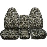 • A set of front, 40/20/40 split bench, wetland camouflage truck seat covers for a 1993 to 1998 Ford F-Series (F150, F250, F350) Console cover is included.