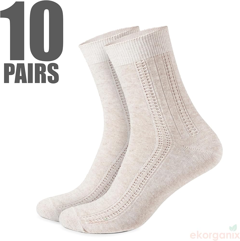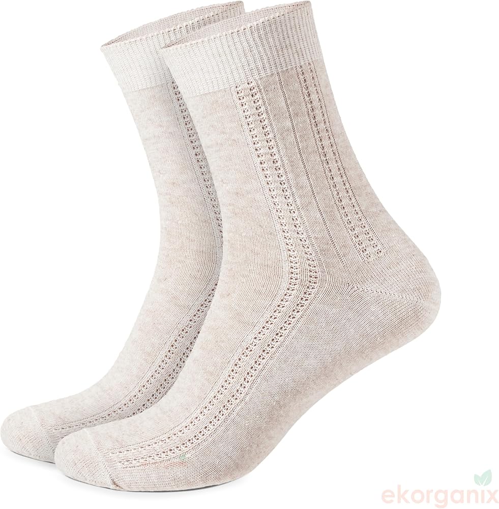 Skin-Friendly Fabric: Benefit from the hypoallergenic nature of flax linen, making these socks ideal for even the most sensitive skin—a feature for those on the lookout for 'hypoallergenic women's dress socks.'