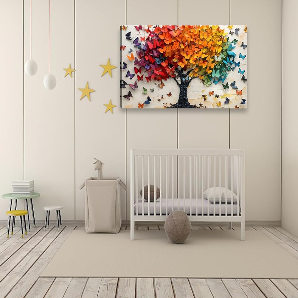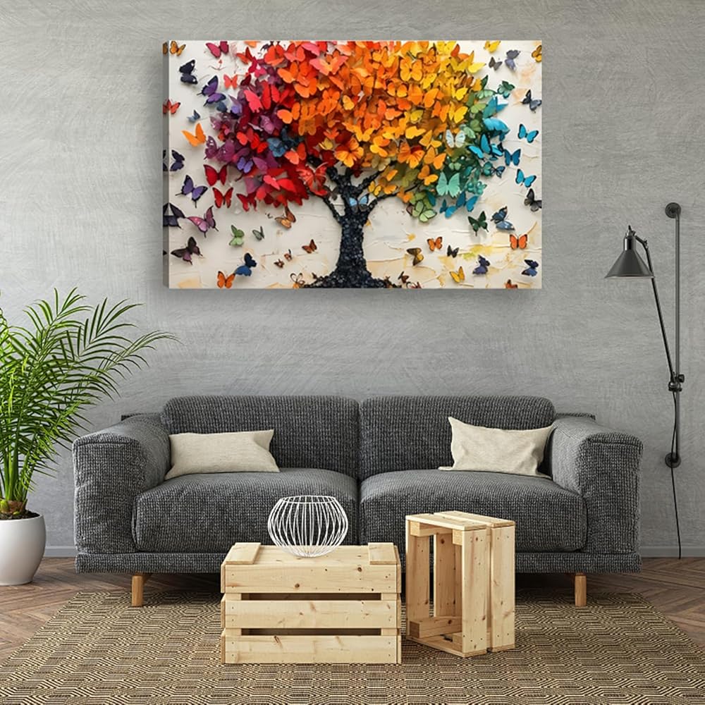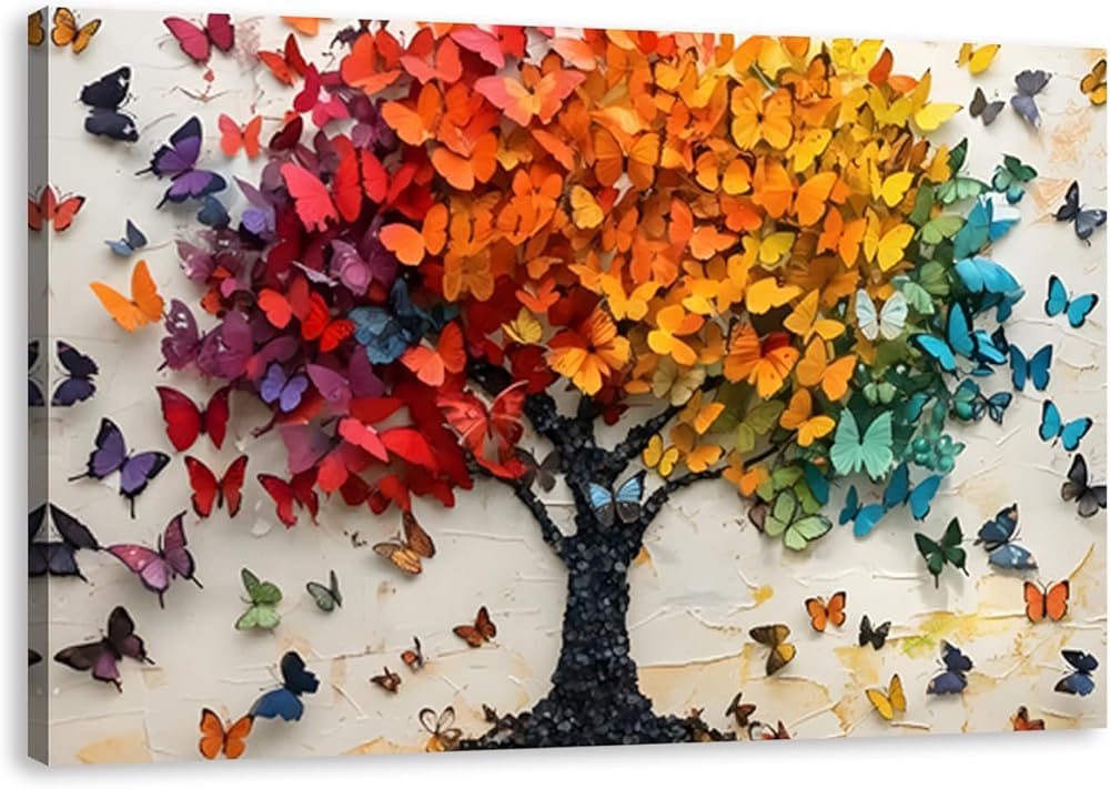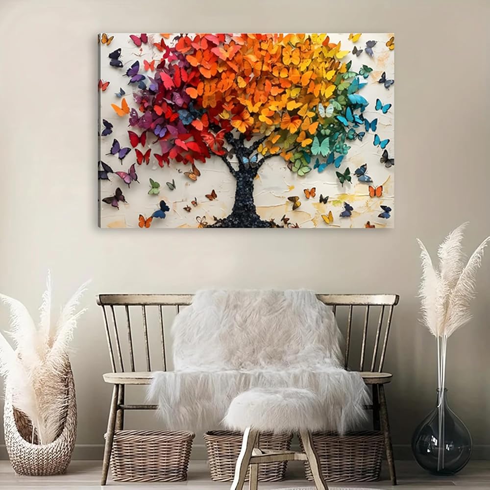 【Artistic and Symbolic】: This canvas painting of the Tree of Life, which is made up of multi-colored butterflies, is a poetic collision of nature and spirituality. The butterflies symbolize transformation and renewal; the Tree of Life signifies family continuity and vitality.