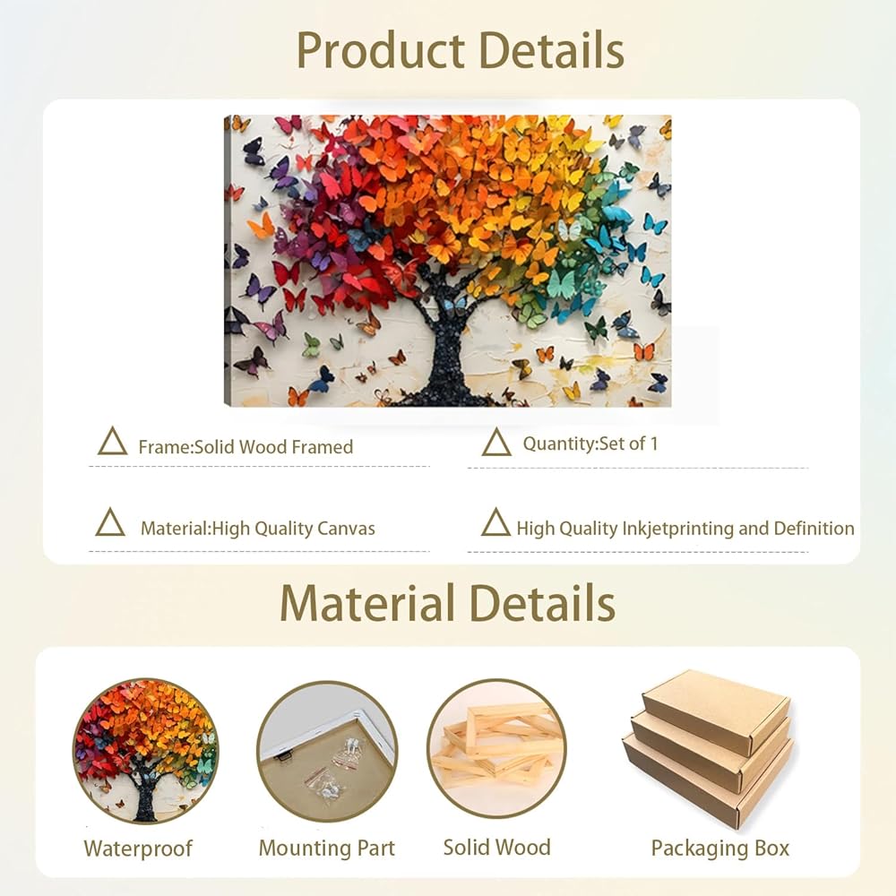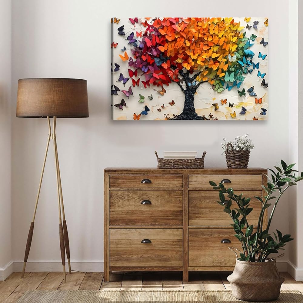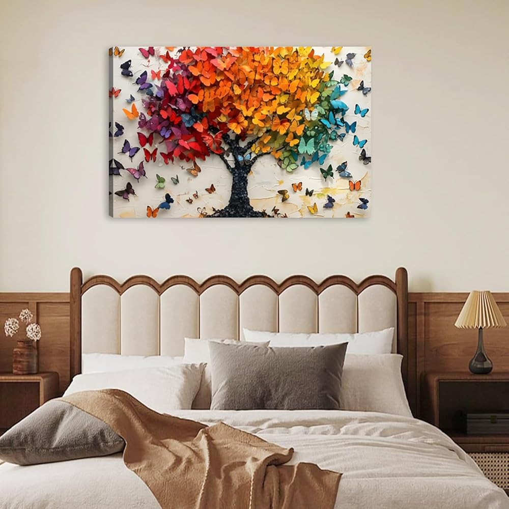 【Widely Used for Wall Decor】: The butterfly tree picture wall art canvas is perfect for decorating wall, bedrooms, bedrooms, living rooms or offices, showing an atmosphere of life and healing. In addition, it can also be used as a gift for tree of life lovers, and they're going to love it.