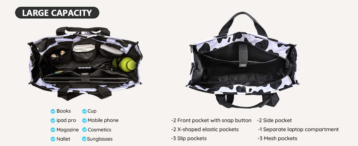 • حقيبة واسعة بسعة 29 لتر مع طباعة بقرة عصرية، مثالية للاستخدام اليومي والعمل وصالة الألعاب الرياضية والسفر