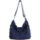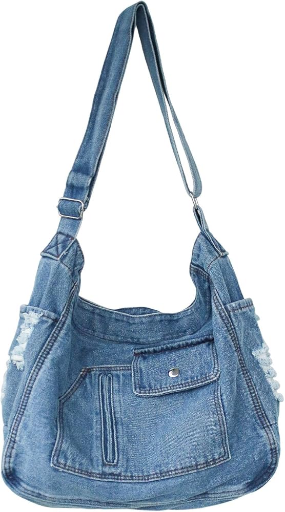 حقيبة كتف من الدينيم للنساء من القماش مع حقيبة يد هوبو خفيفة الوزن بسحاب وحقيبة يد كاجوال من الجينز