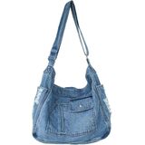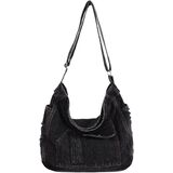 حقيبة كتف من الدينيم للنساء من القماش مع حقيبة يد هوبو خفيفة الوزن بسحاب وحقيبة يد كاجوال من الجينز in Kuwait