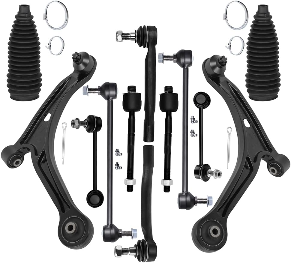 مجموعة تعليق مكونة من 12 قطعة لـ 2003-2005 لسيارة Honda Pilot 2001-2005 لـ Acura MDX ذراع التحكم السفلي الأمامي ومفصل كروي داخلي خارجي لقضيب الربط نهاية قضيب Sway Bar End Link حذاء التوجيه