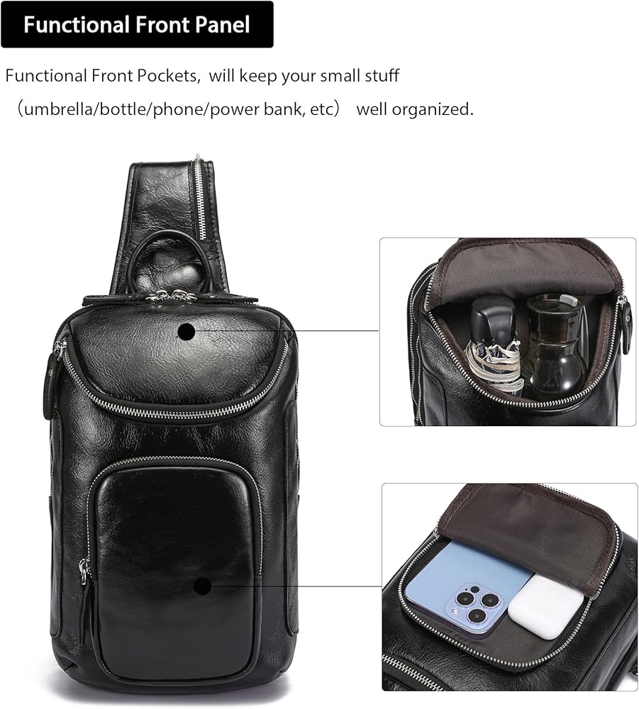 100% Full Grain Leather: This Sling Bag and family travel passport wallet are made of full grain cowhide crazy horse leather, messy wrinkles and scratches on the surface create a retro and wild looking.