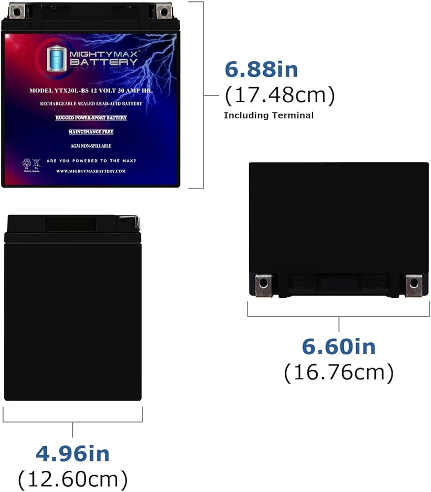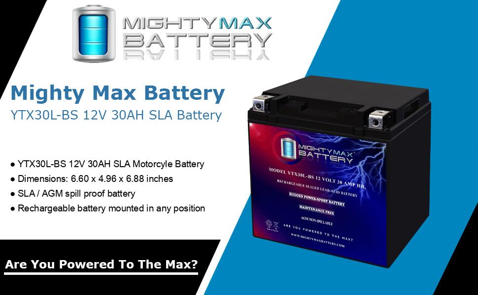 بطارية بديلة Mighty Max YTX30L-BS 12V 30AH متوافقة مع Yuasa YIX30L ETX30L