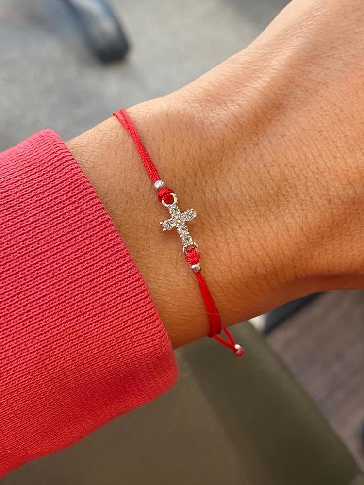 • DESIGN FEATURES: Elegant crystal cross charm bracelet with sparkling rhinestones on a vibrant red string, perfect for daily wear or special occasions
