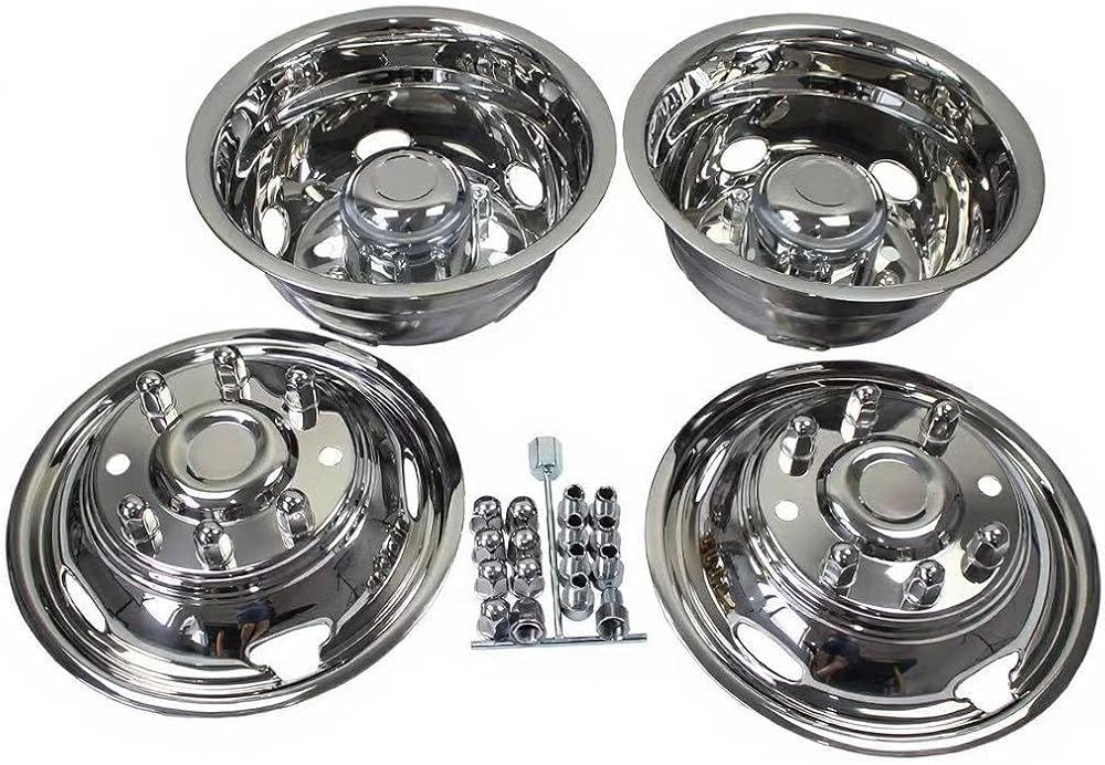 JESONN 17 Inch 8 Lugs 5 Hand Holes Stainless Steel Wheel Simulators for 2011-2021 Chevy GMC 3500 Dually Wheel Truck