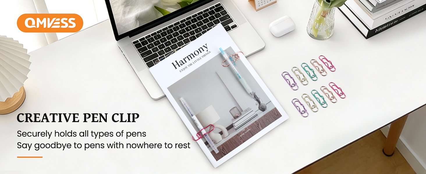 تصميم مشبك قلم متعدد الوظائف: يتميز بشكل مشبك ورق، ويتم تثبيته بشكل آمن على الكتب والمخططات والمجلدات. يمكن استخدامه كحامل قلم وعلامة مرجعية، مما يزيل متاعب القرطاسية المتناثرة أثناء الدراسة أو العمل