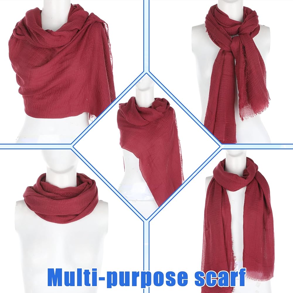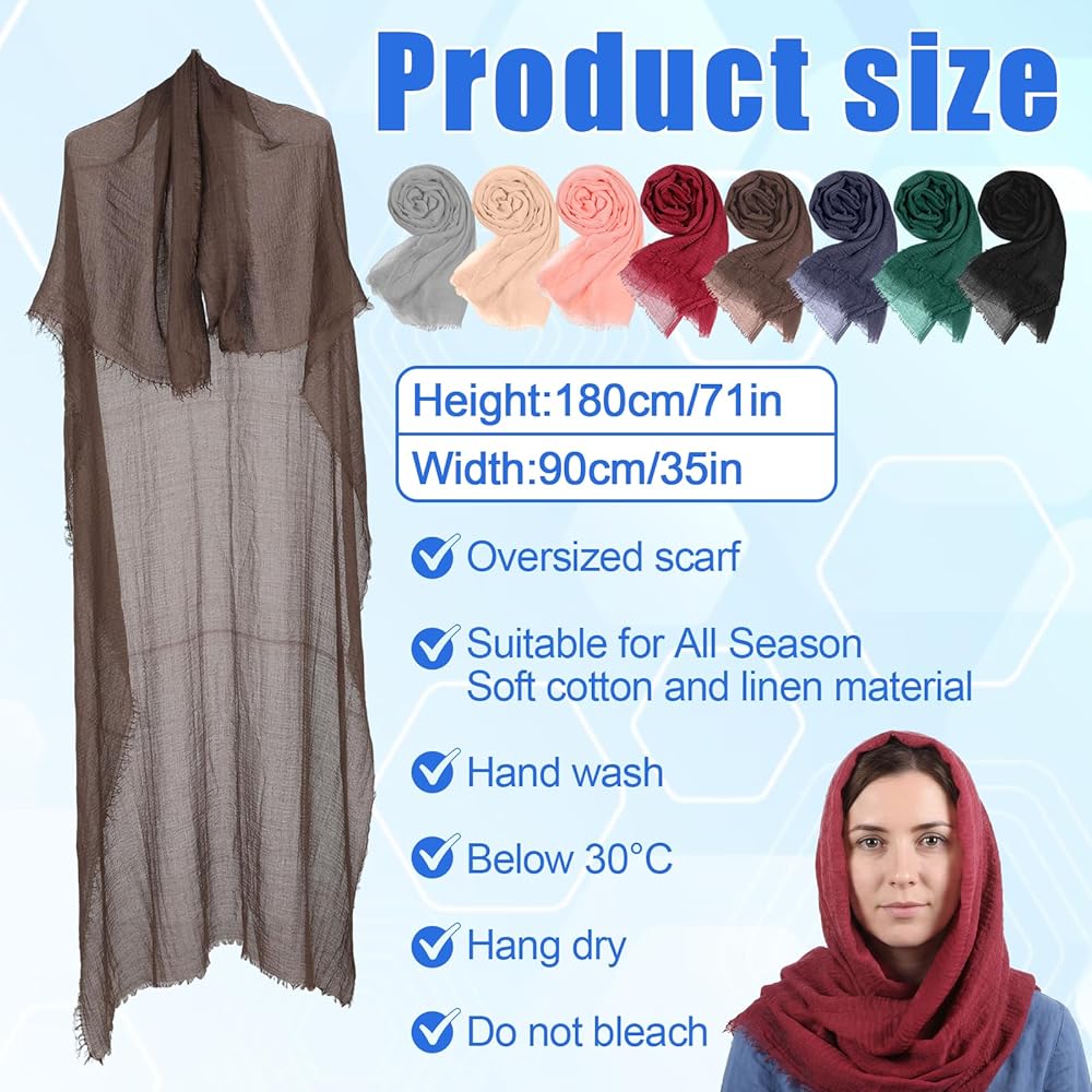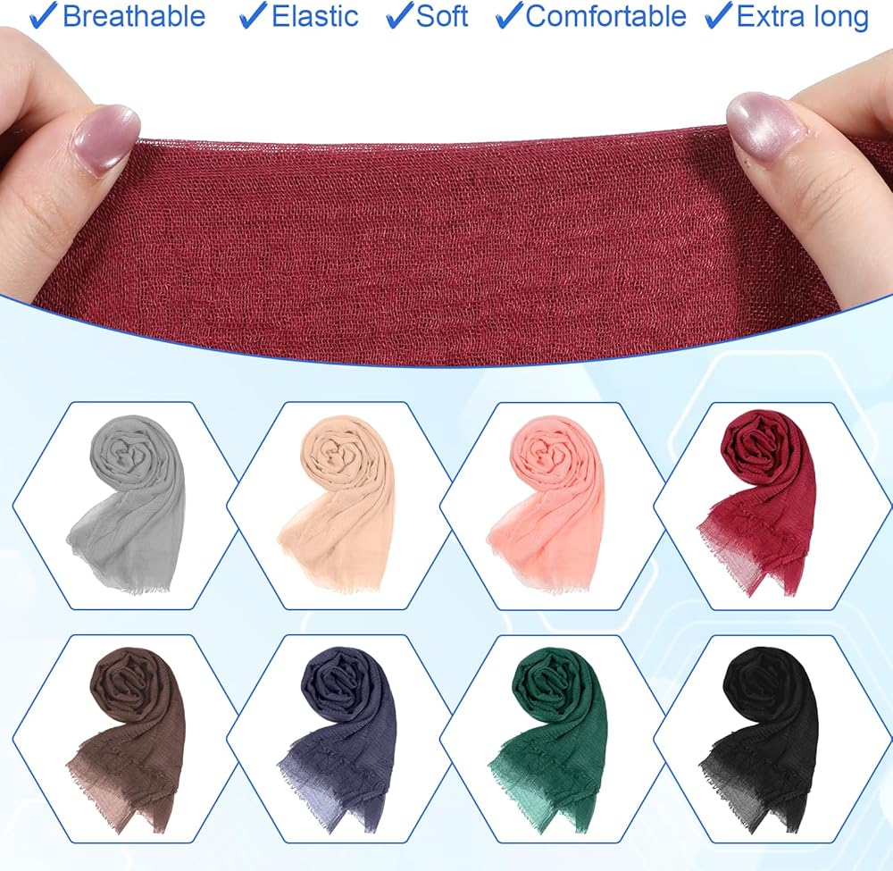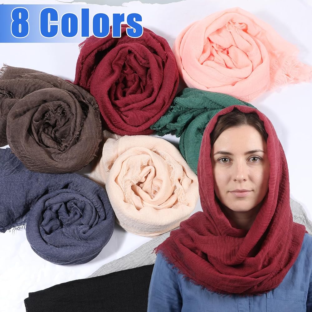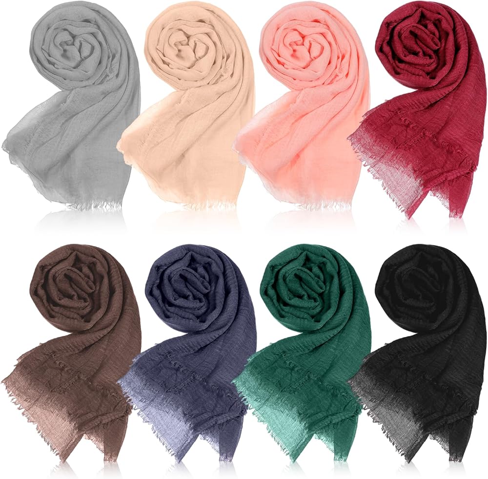 Soft and Comfortable: These scarves are made of cotton and linen, lightweight, soft, skin-friendly, comfortable and have no sultry feeling, harmless to skin and reliable, washable and not easy to fade or deform, can be used for a long time. The scarves set with 8 colors for you to choose from, enough to meet your needs.